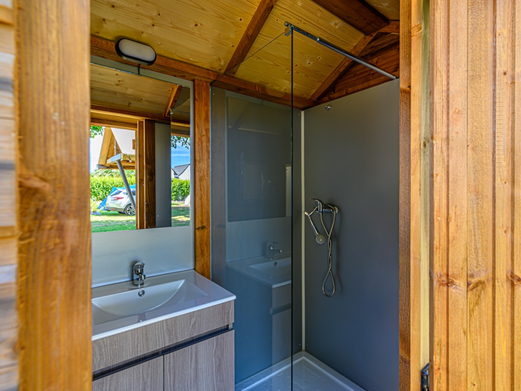 Das Mobilheim Standard verfügt außerdem über eine große Terrasse von 10m², auf der Sie die frische Luft der Bretagne genießen können. Ob Entspannung oder Familienaktivitäten, dieses Mobilheim garantiert einen angenehmen und praktischen Aufenthalt im Herzen der Natur.