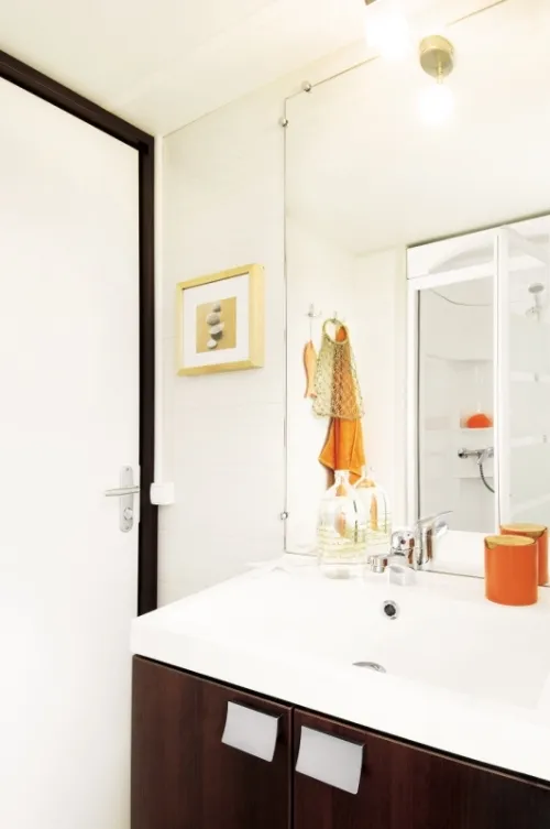 Ausstattung ergänzen: Duschabzieher, Duschvorleger, Spüllappen, Schüsseln.