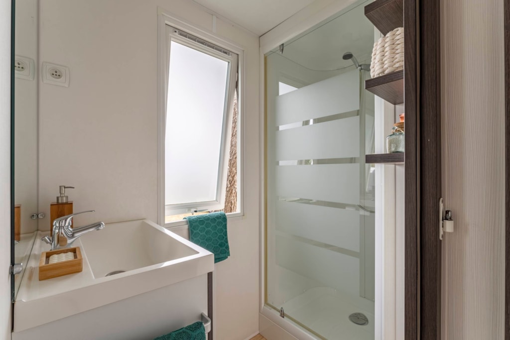 Super nice, welcoming team. Beautiful, very new mobile home. Situated perfectly - not much traffic, pine forest and beach-adjacent. The pool is smallish, but well-looked after. Love the eco-consciousness and the fact that the camping site is car-free (except for the parking in the front).