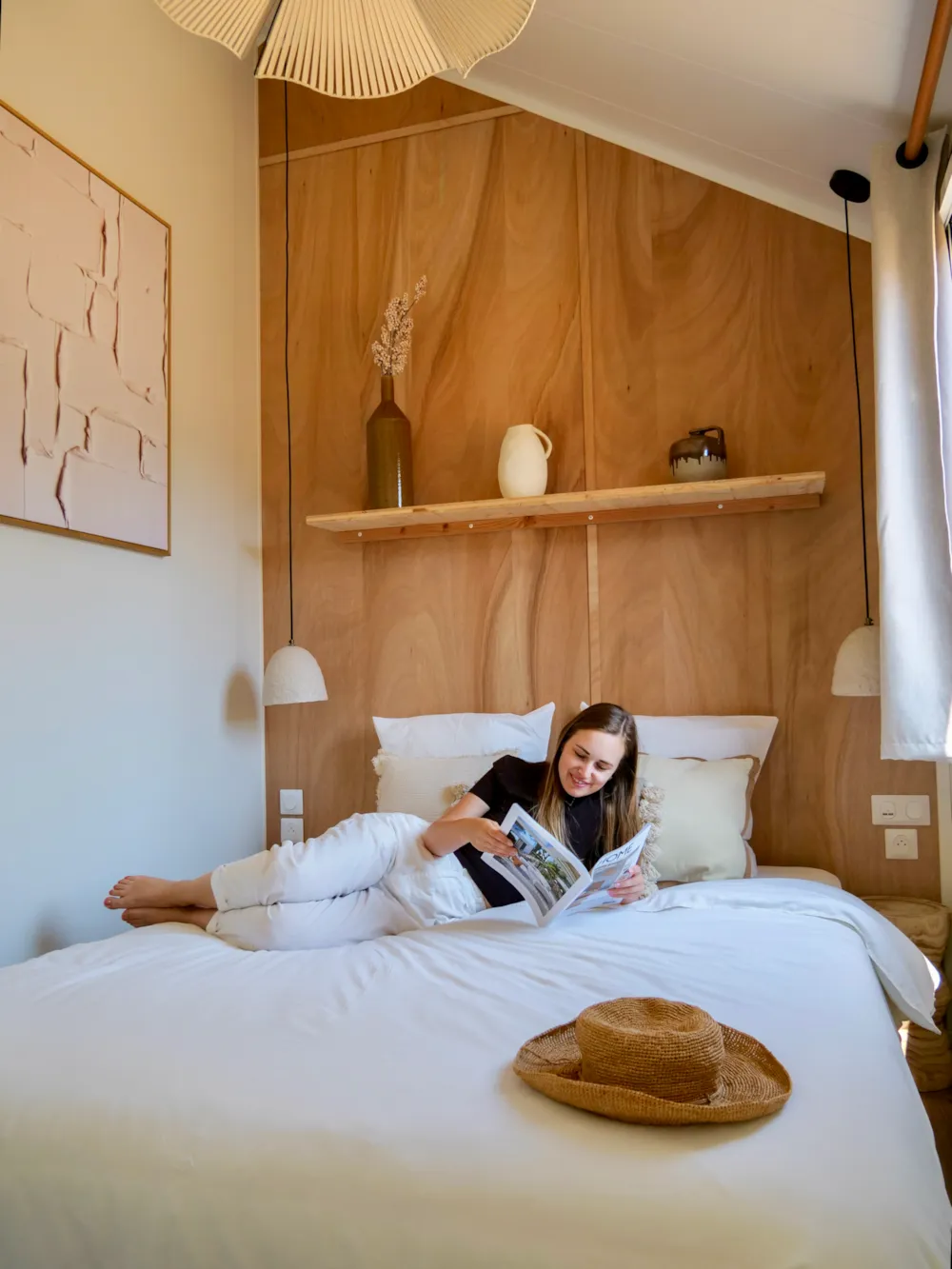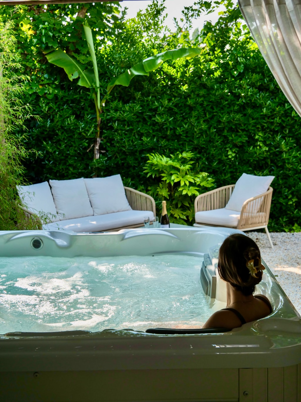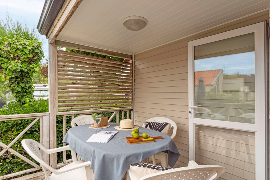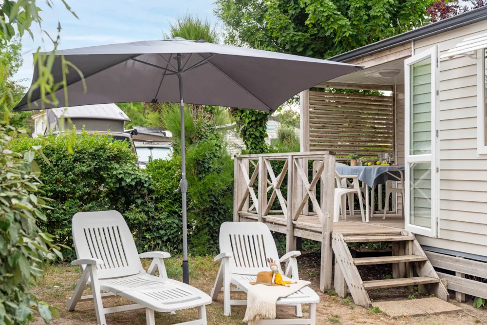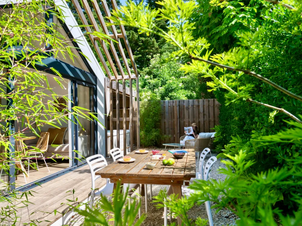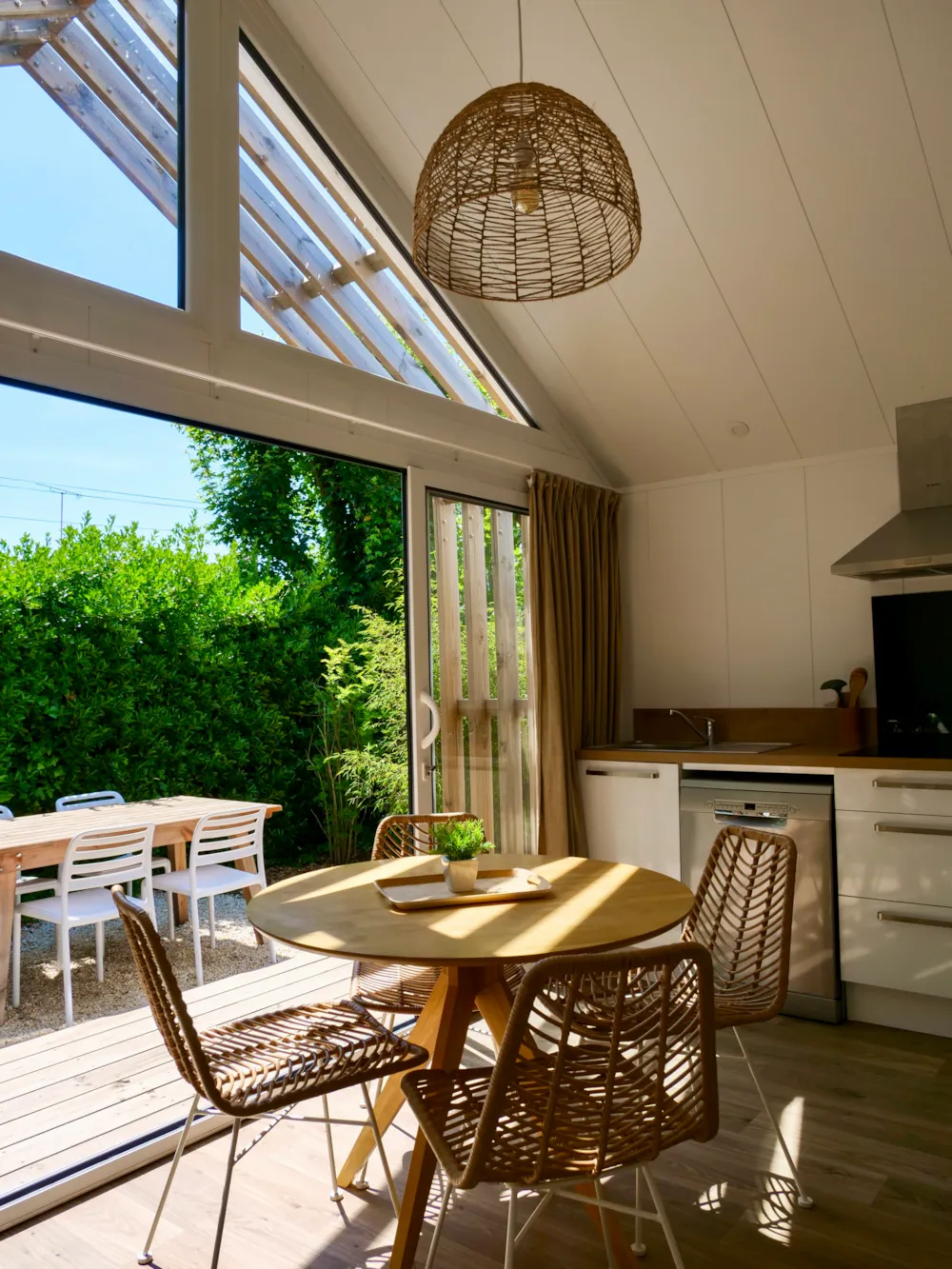 Sie profitieren von einem in Ihre Pergola integrierten Sommerbett, das den Wohnraum Ihrer Holzunterkunft vergrößert. Die Innenräume wurden von der Firma Jardind'art Home mit größter Sorgfalt in einer gemütlich-schicken Atmosphäre dekoriert.