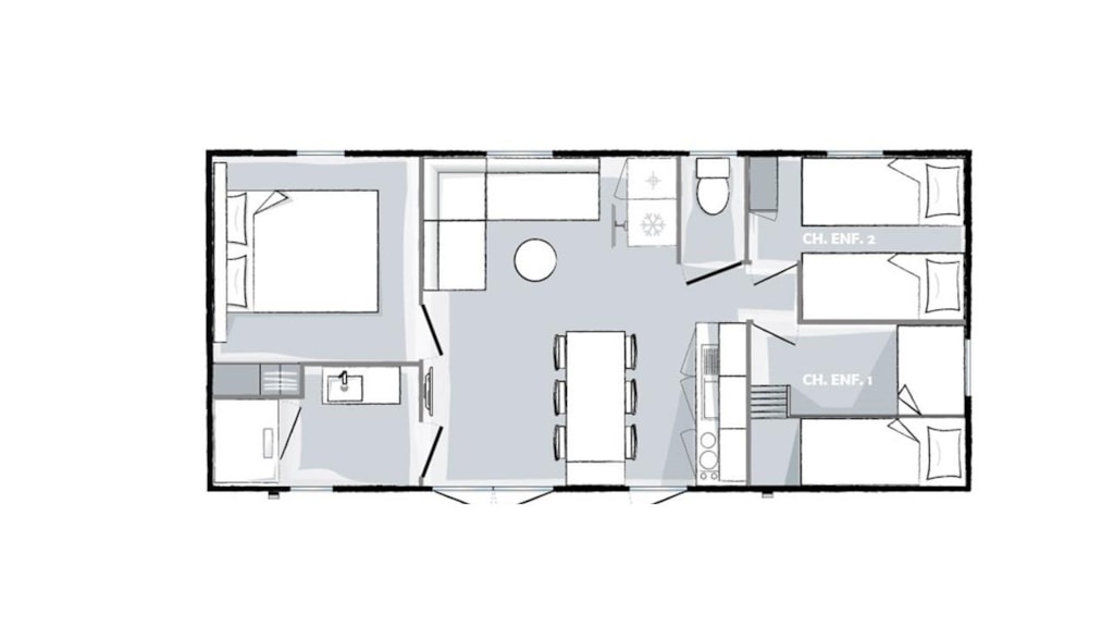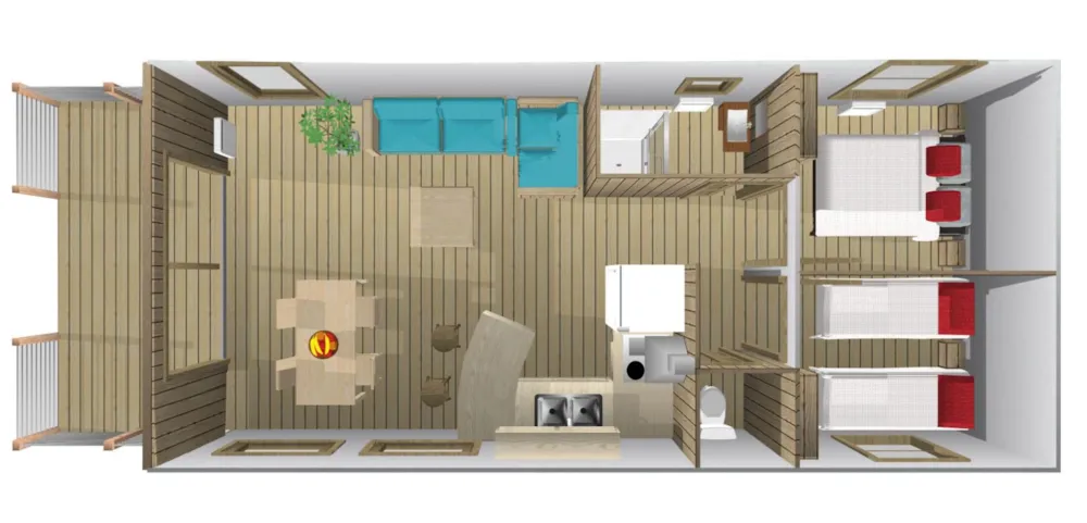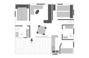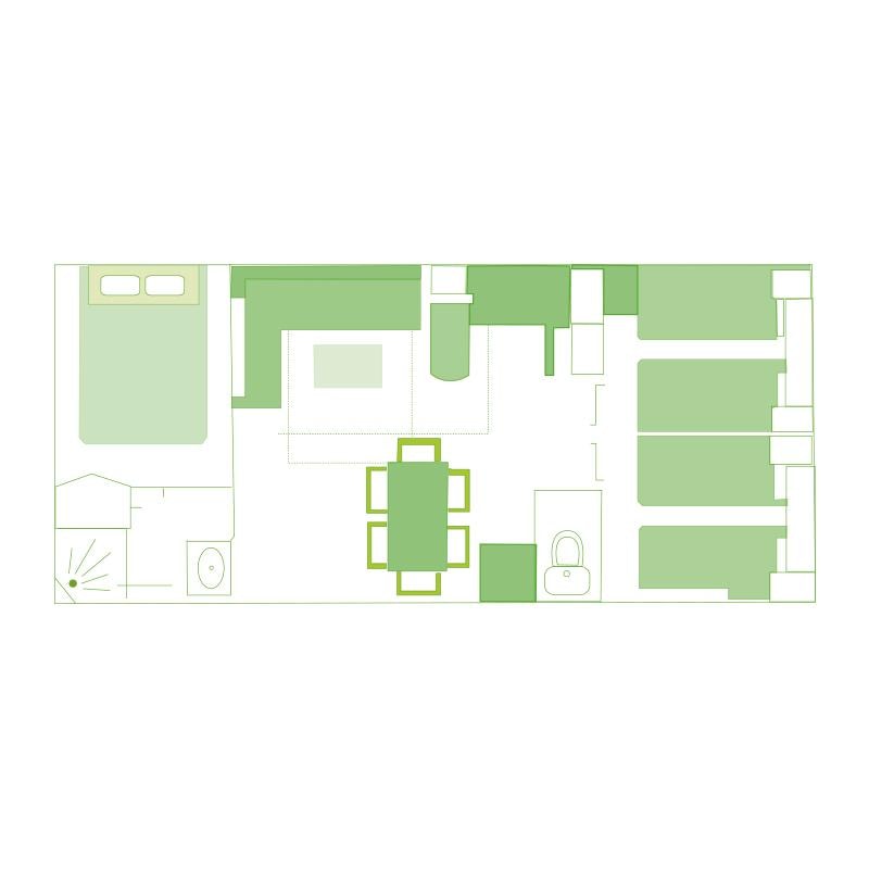 Mobilheim – 2 Schlafzimmer – 1 Badezimmer – Klassisch für 4 Personen: