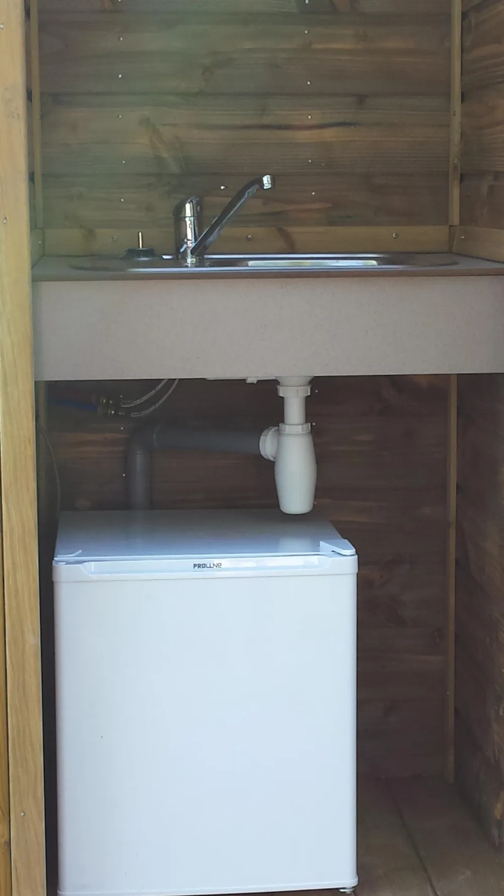 Großzügiger mit Hecke eingefasster Stellplatz mit modernem eigenen Bad und eigener Spüle mit Kühlschrank. ABER: Der Zugang der Nachbarn zu Ihrem Bad und Spüle erfolgte ohne Sichtschutz über unseren Stellplatz, wodurch die Privatsphäre, die durch die Hecken entsteht, weg ist.