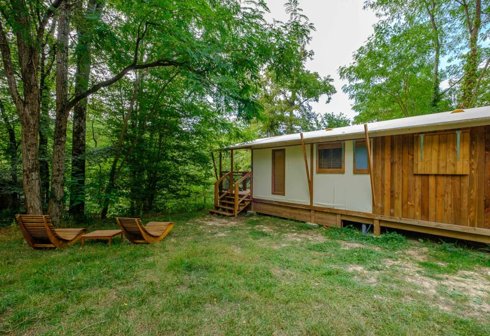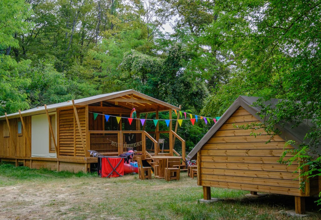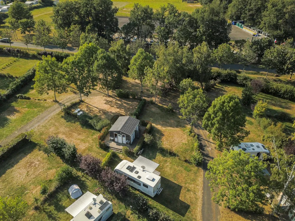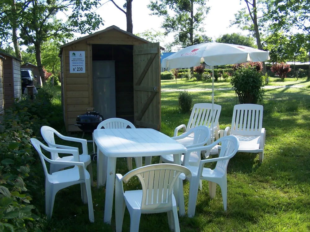 Stellplatz Castels Suite mit eigene Sanitäranlage von 100 m² bis 150 m², geeignet für Zelt, Wohnwagen oder Wohnmobil.