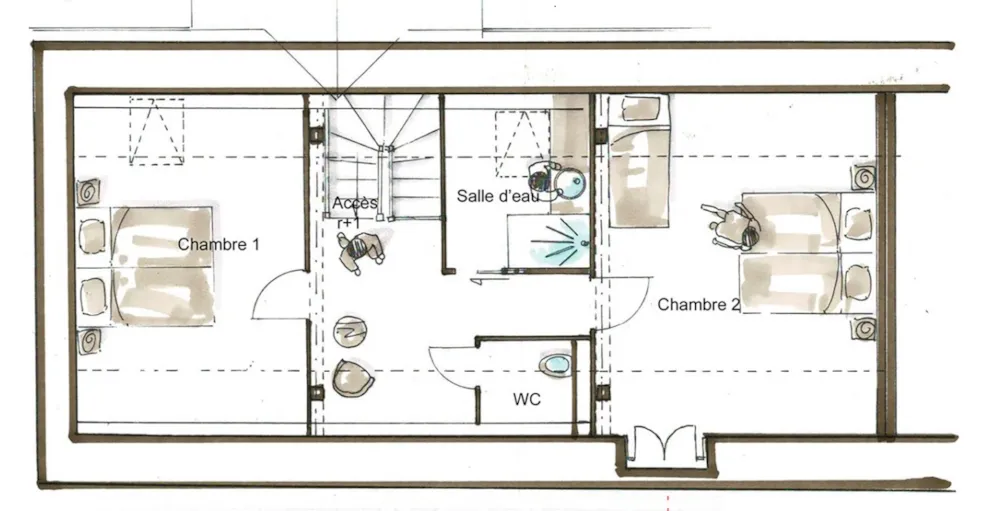 – 1 Schlafzimmer mit 2 Einzelbetten (80 x 190 cm)