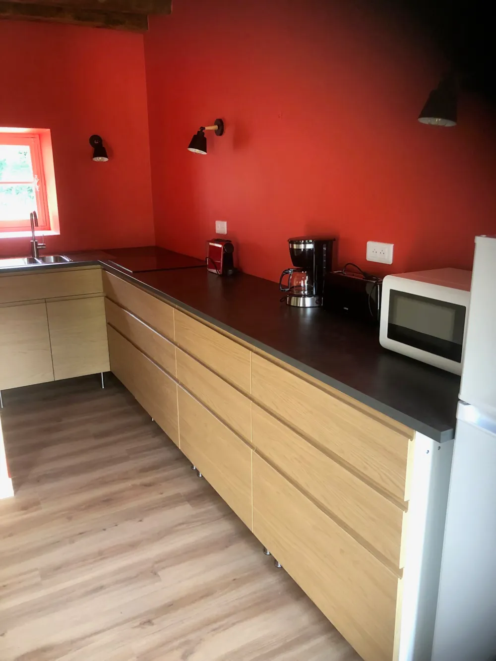 - Kühlschrank, Cerankochfeld, Mikrowelle, Kaffeemaschine