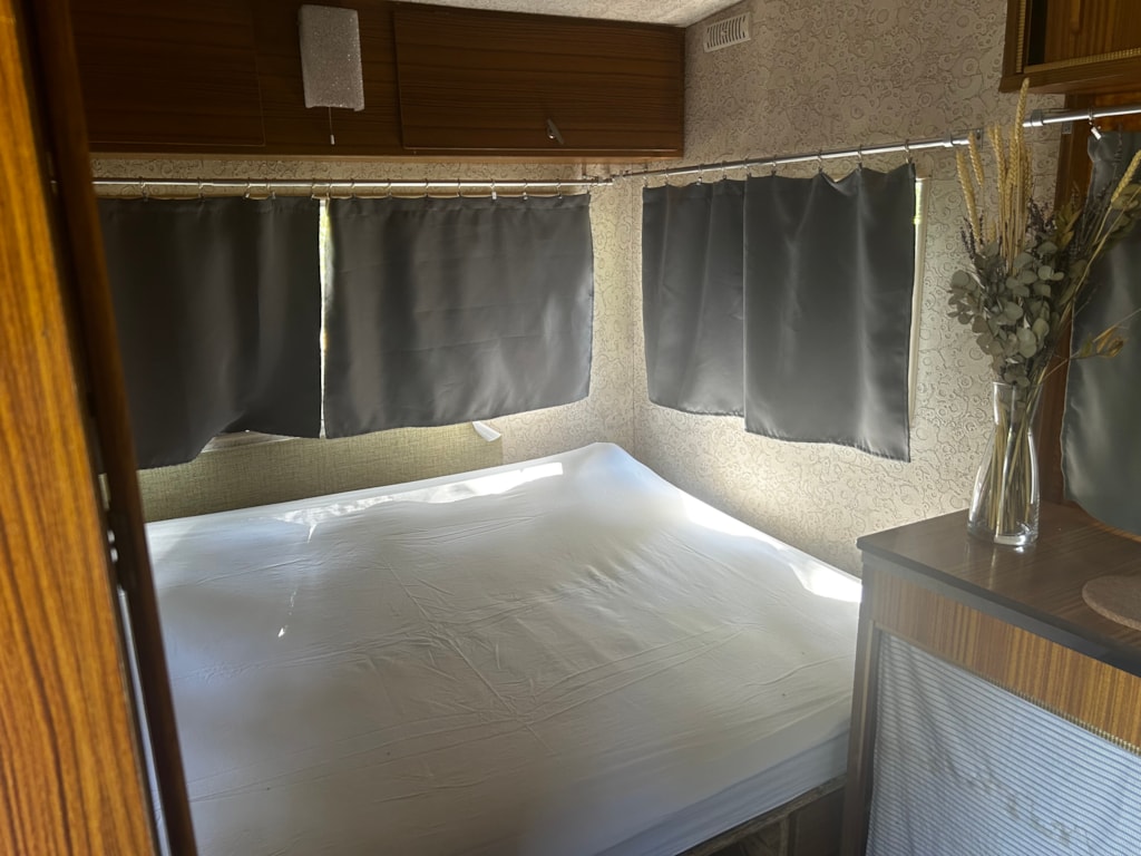 Vintage-Wohnwagen mitten in der Natur für 2 Personen direkt am Wasser, ausgestattet mit einer Außenküche
