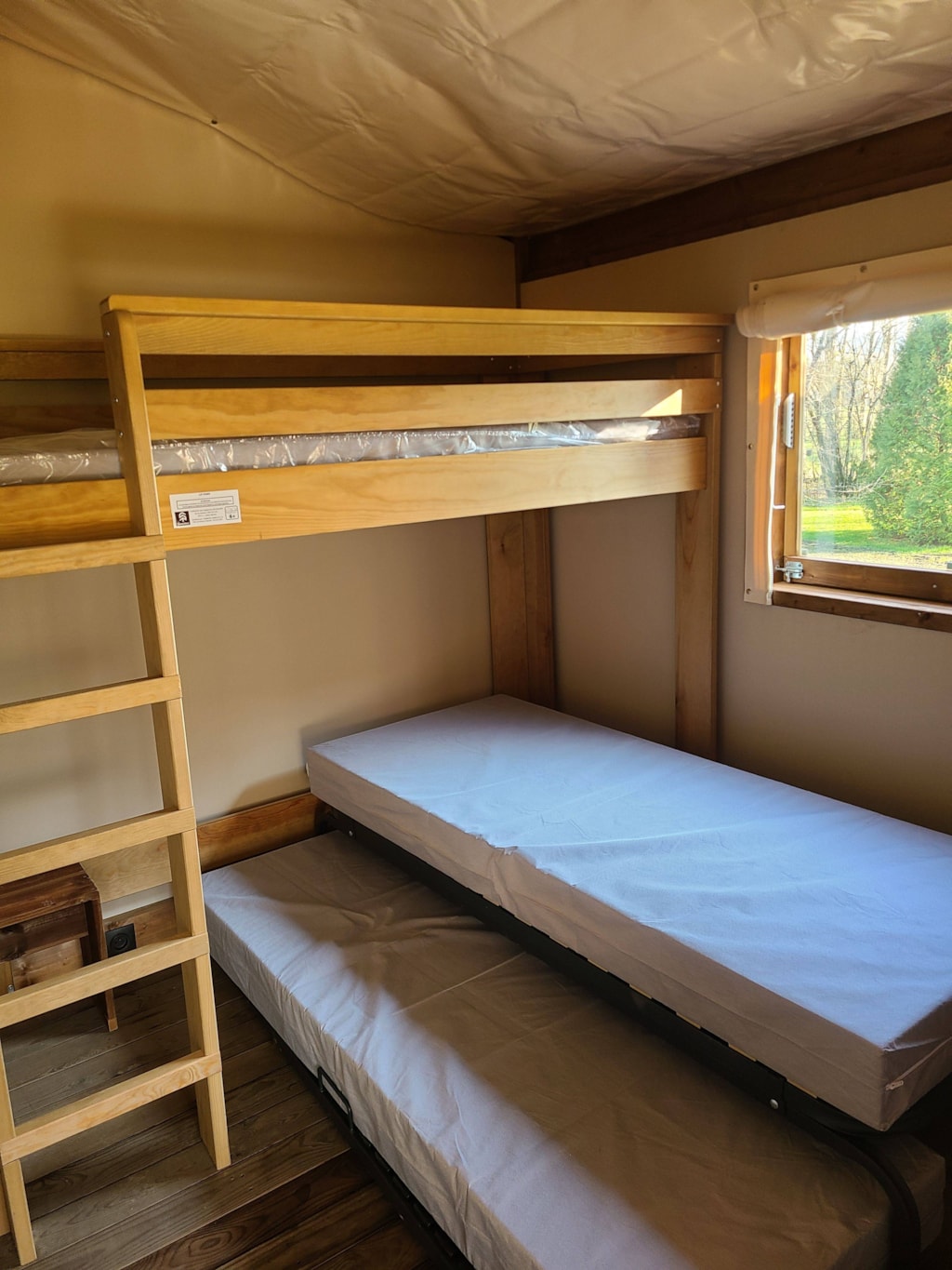 - Steigen Sie für Ihren Urlaub in die Lüfte dank unserer Hütte, halb Zelt, halb Holz !