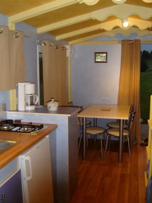D'une superficie de 35 m2 (+ 12m² de terrasse couverte), ce chalet peut accueillir 6 personnes. Ce chalet est doté d'une cuisine agréable avec nombreux rangements. Une salle d'eau avec douche et lavabo vous procure un confort et une autonomie maximale. Vous passerez vos repas en plein air sur la terrasse couverte et apprécierez la luminosité de ce chalet grâce à sa grande baie vitrée. Ce chalet est doté d'une cuisine agréable avec nombreux rangements. Une salle d'eau avec douche et lavabo vous procure un confort et une autonomie maximale. Vous passerez vos repas en plein air sur la terrasse couverte et apprécierez la luminosité de ce chalet grâce à sa grande baie vitrée. Plus d'info concernant le camping:Plus d'info concernant le camping: Cliquez ici