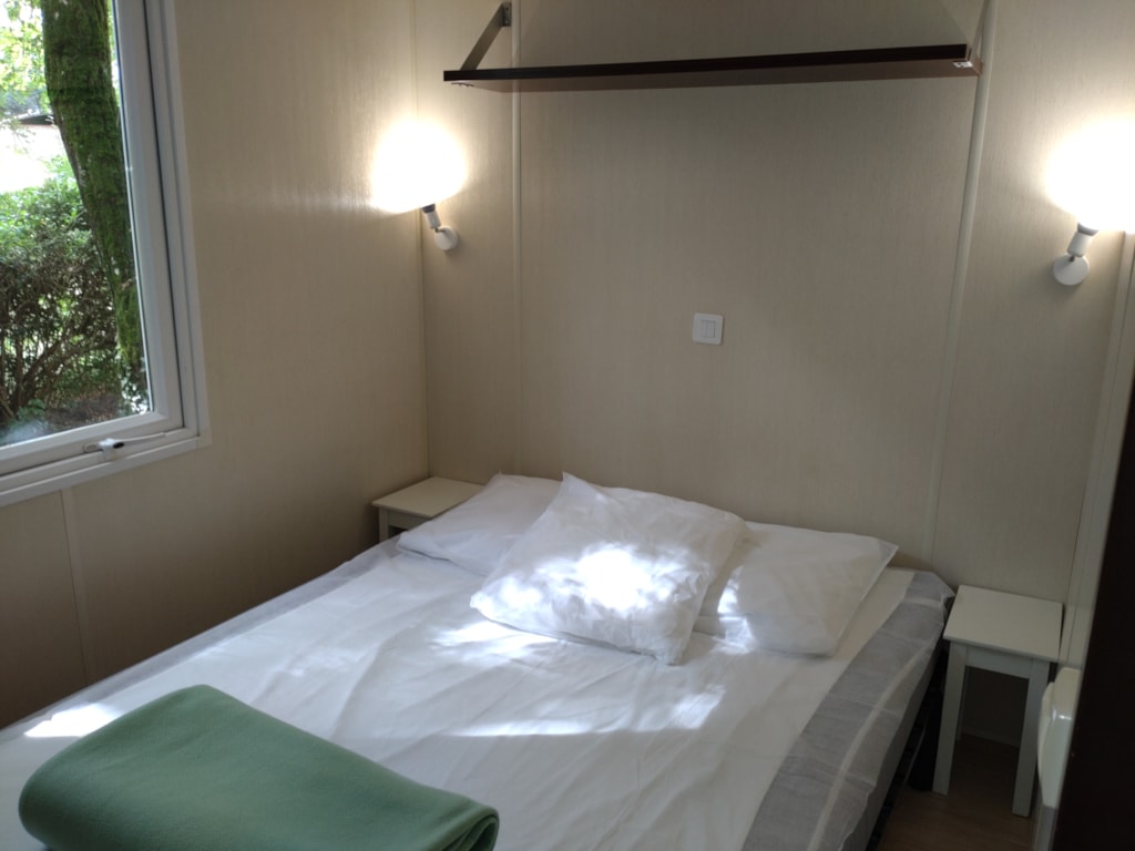 Très fonctionnel et spacieux, ce mobil-home récent est idéal pour une famille de 5 personnes et peut héberger jusqu’à 6 personnes sur demande. Il dispose en effet d’une chambre parentale avec un lit double et d’une chambre meublée de 3 lits simples (dont un en hauteur), un matelas une personne peut être rajouté sur demande. Grande famille ou couples d’amis, plusieurs profils de vacanciers trouveront ce locatif pratique pour un séjour tout confort en Dordogne