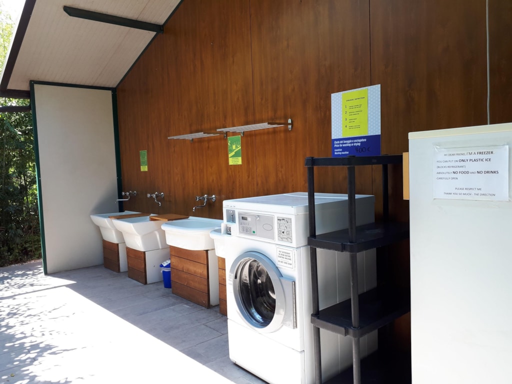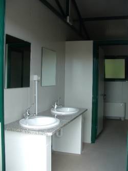 Großer Platz mit sauberen Sanitäreinrichtungen.
