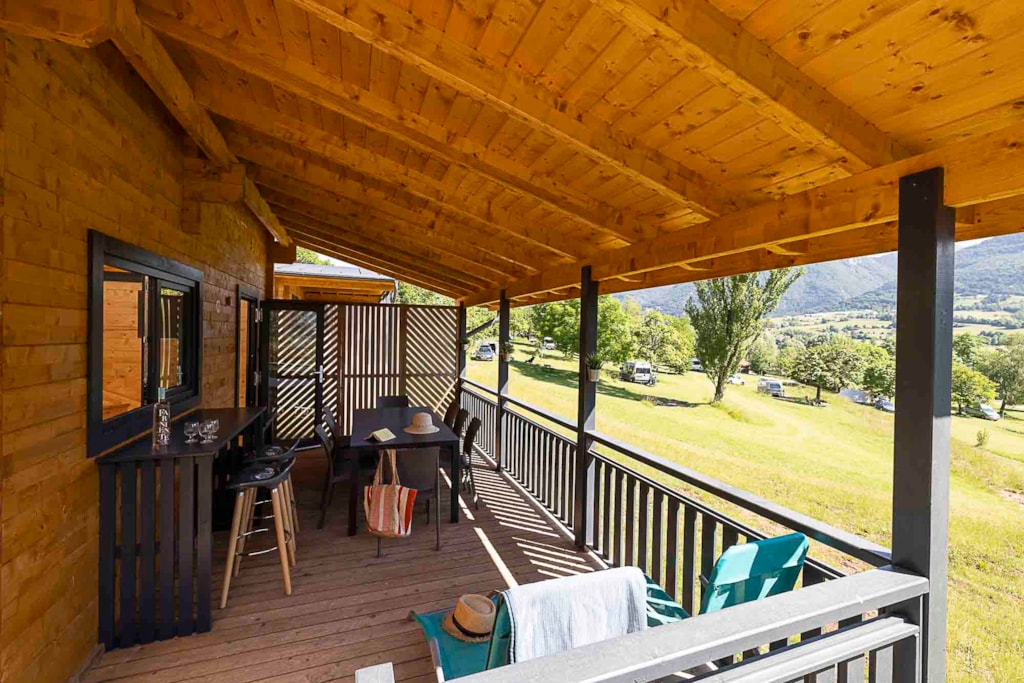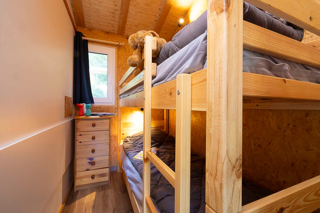 Lodgezelt für 5 Personen, mit allem Komfort aus Holz und PVC-Plane