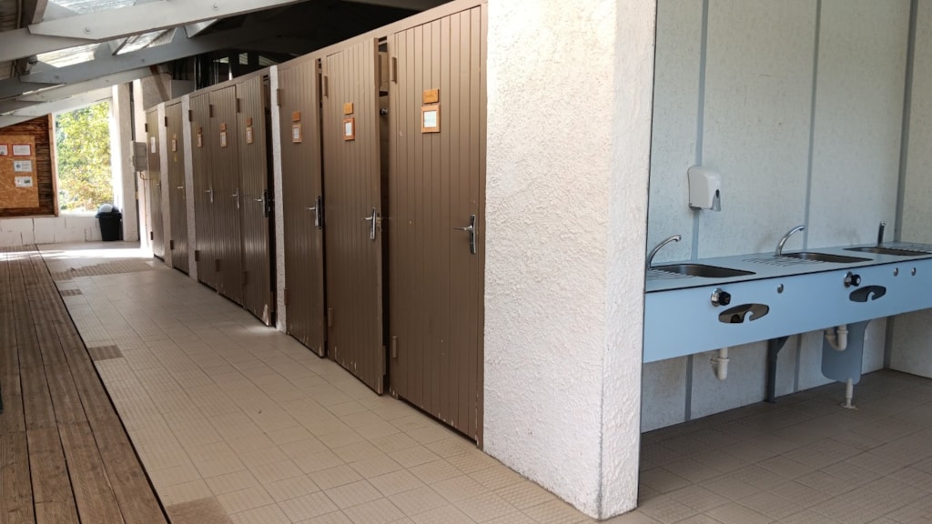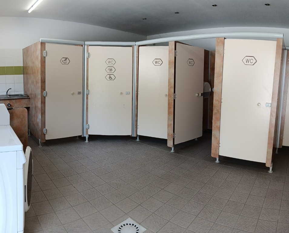 Eine Toilettenkabine für Personen mit eingeschränkter Mobilität (PRM) ist vorhanden und mindestens 10 unserer Stellplätze sind für Personen mit eingeschränkter Mobilität zugänglich.