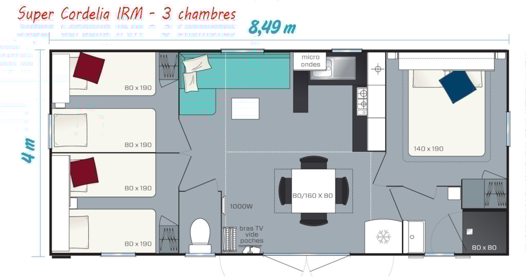 - Maße (Bett) : 80 x 200
