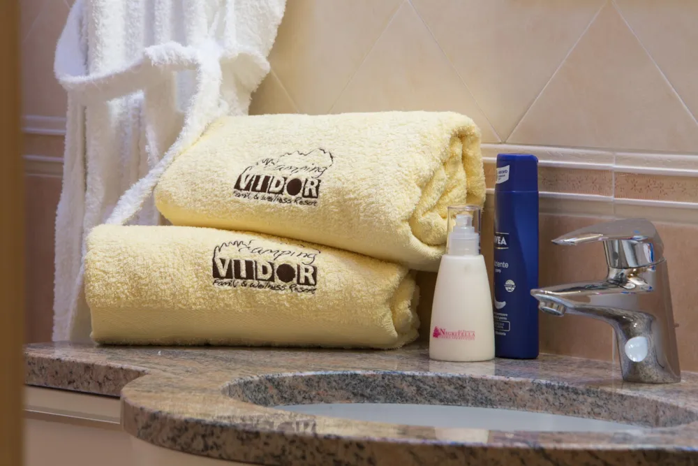 Eine hervorragende Lösung, um die Vorteile eines Hotels mit der Freiheit, die nur ein Resort bieten kann, zu kombinieren. Die Dreibettzimmer Classic in der Dependance des Camping Resorts Vidor sind ca. 26 m² mit 3-4 Betten, Doppelbett und 1 Einzelbett, Sat TV 24", Safe, Bad mit Dusche und WC, Föhn, mit Balkon oder Terrasse ausgestattet und kostenlos W-LAN.