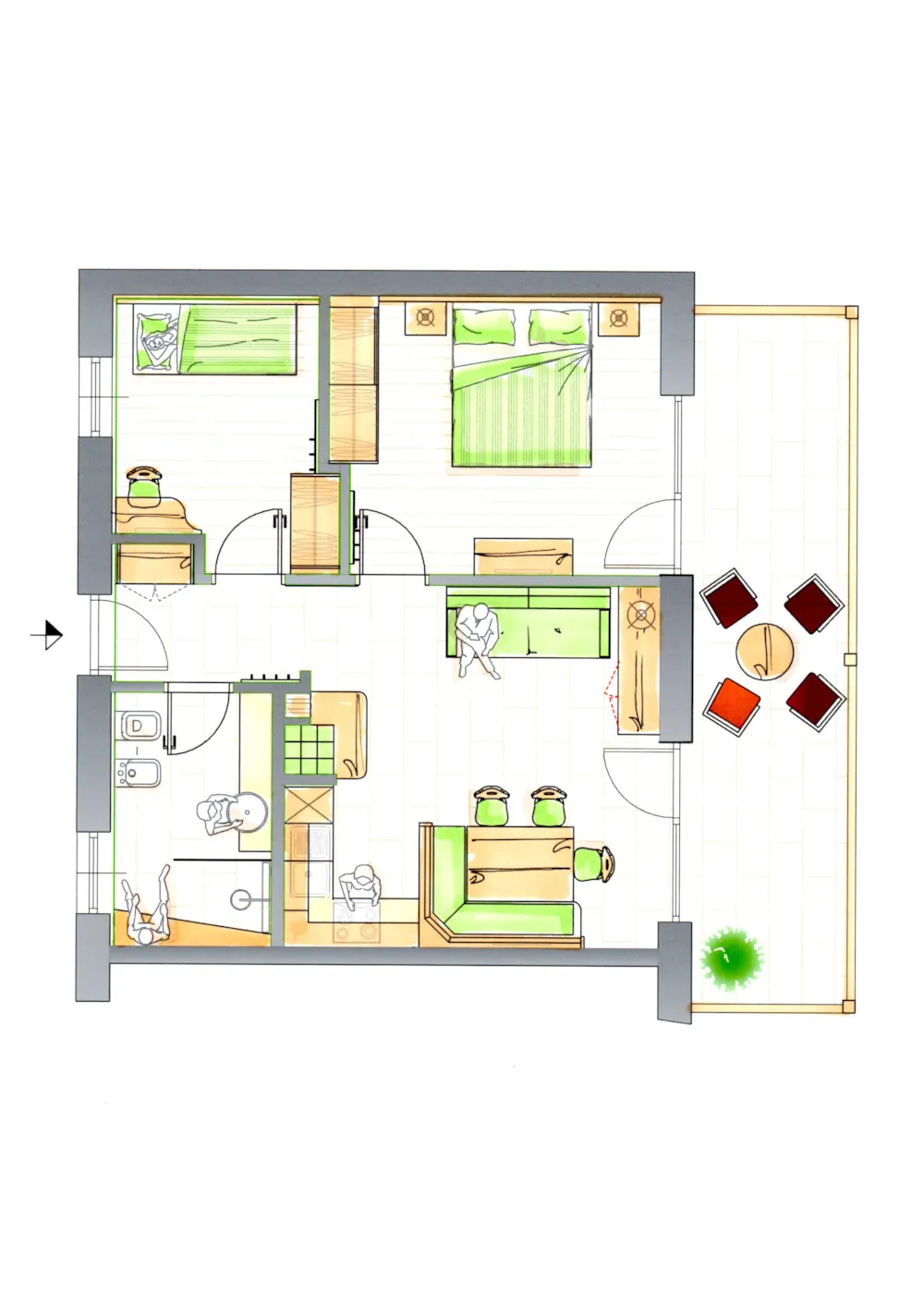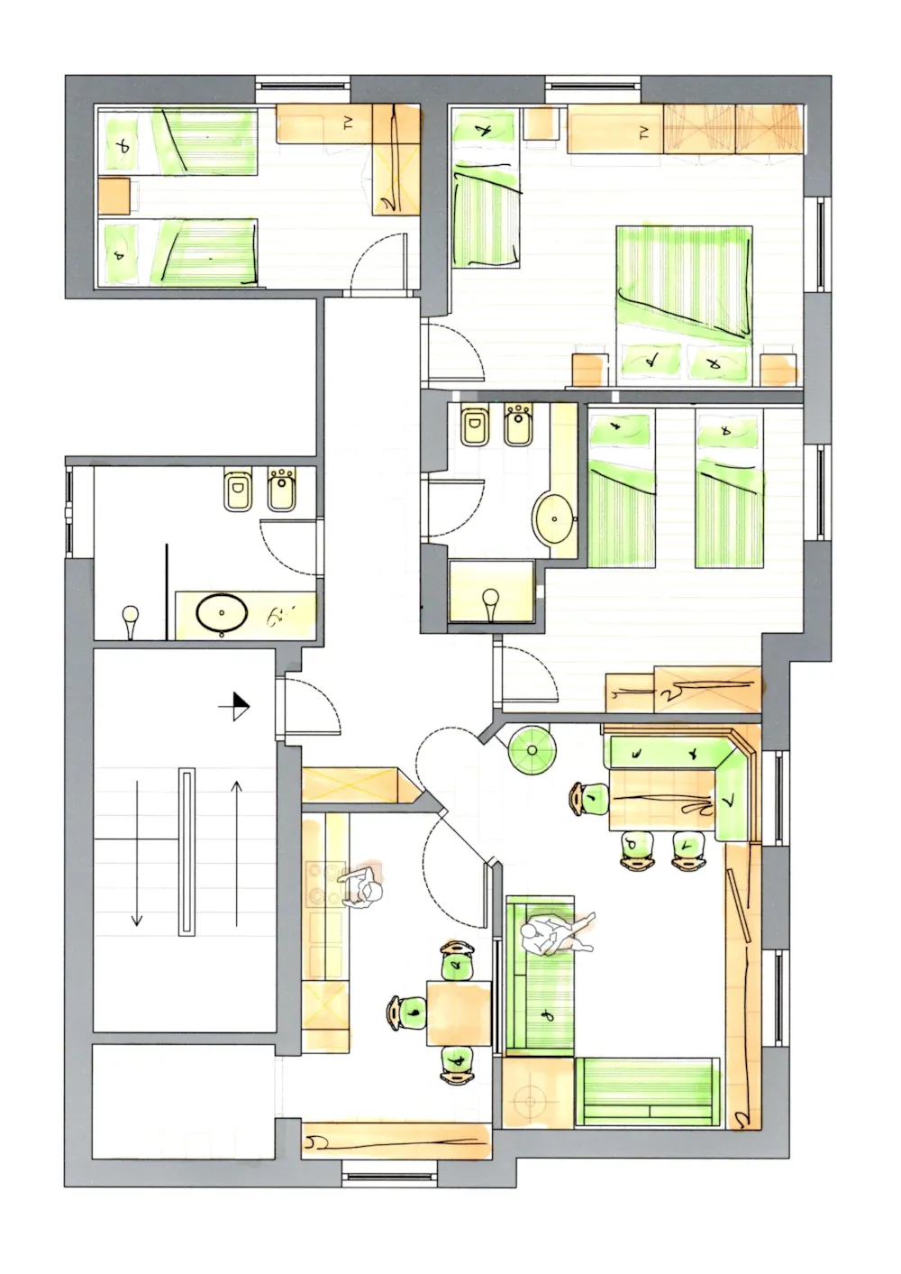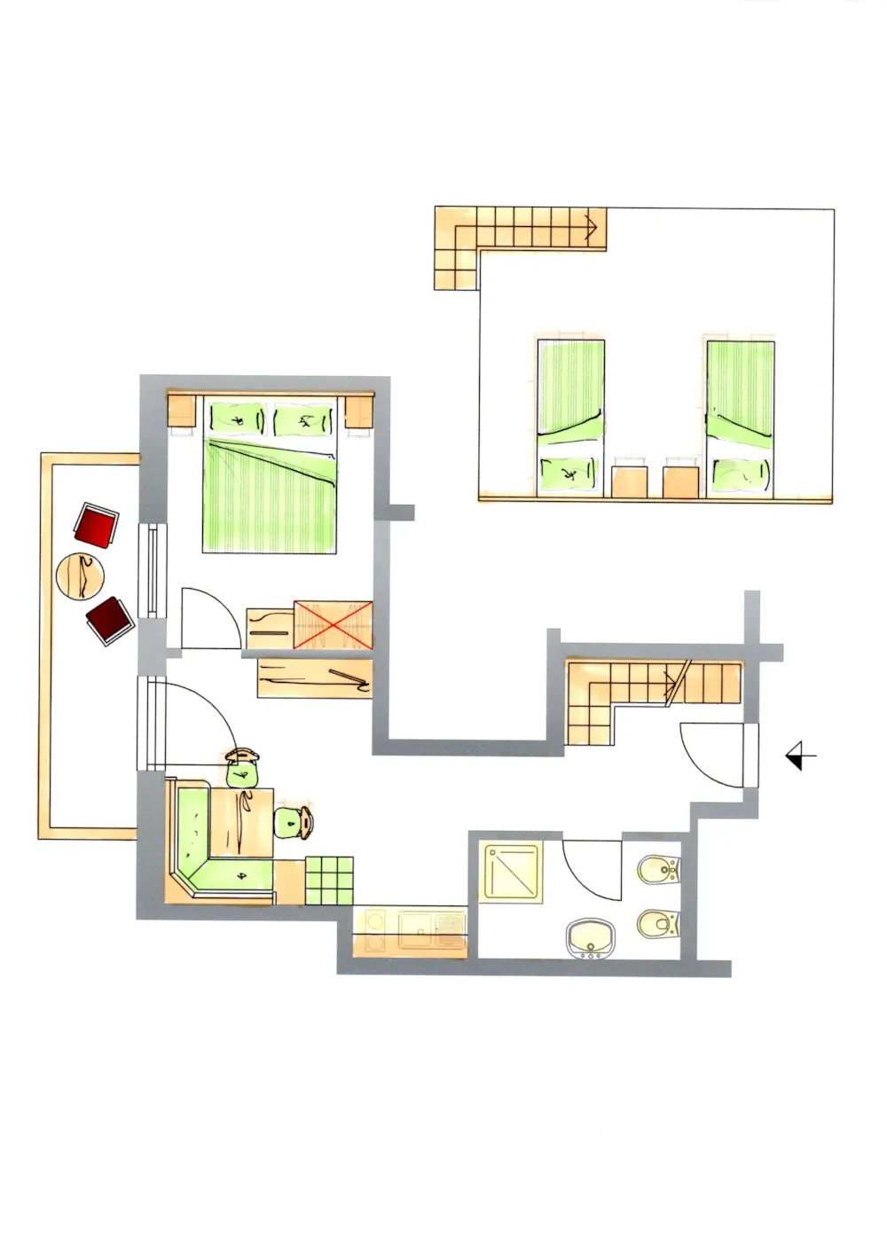 Die Familien Suiten sind ca 50 qm, 4 oder 5 Schlafmöglichkeiten, Doppelbettzimmer, Stockbett und Schlafcouch, Sat TV, Safe, Bad mit Dusche und WC und kostenlos W-LAN.