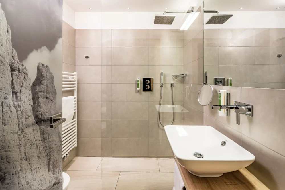 Schöne Aussicht zu den Dolomiten. Sanitäranlagen sehr schön und sauber. Schwimmbad ist auch top.