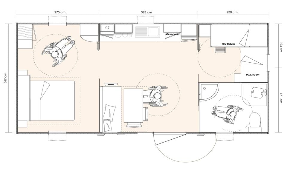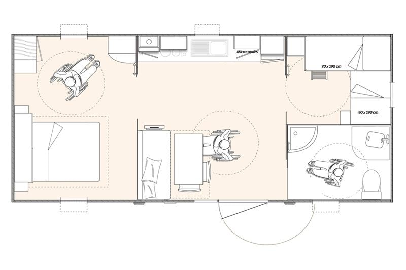 Mobilheim für Personen mit eingeschränkter Mobilität zugänglich.