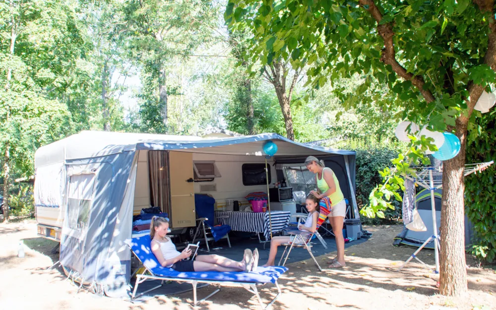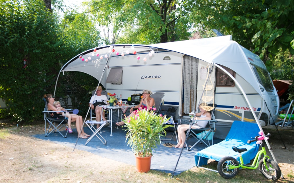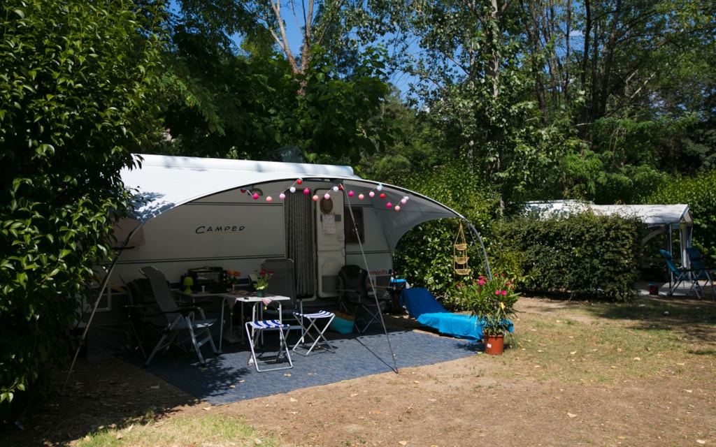 Stellplatz mit Strom (10A) für 2 Personen + 1 Fahrzeug - Haustiere sind in der Hochsaison verboten (in der Nebensaison nur 1 Tier pro Stellplatz).