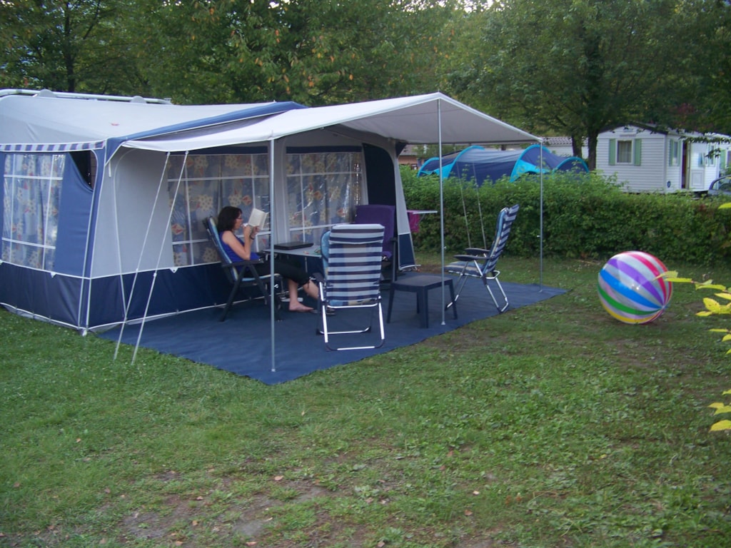 Lage von mindestens 100 m² auf dem Camping du Lac de Carouge. Der Preis beinhaltet zwei Personen, Zelt oder Wohnwagen, Auto und Strom.