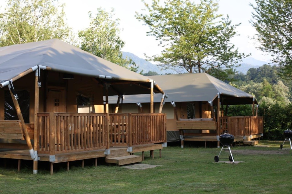 Allein, mit Ihrer besseren Hälfte oder mit der Familie zur Freude Ihrer Kinder, mit oder ohne Haustier, genießen Sie einen Aufenthalt in unseren luxuriösen VIP-Zelten, um das Glamping in Savoyen zu 300 % mit unvergleichlichem Komfort zu erleben. Die Lodge-Zelte befinden sich in unmittelbarer Nähe des Lac de Carouge in Savoyen im Herzen der Alpen, auf ultra geräumigen und sehr gut ausgestatteten Stellplätzen.