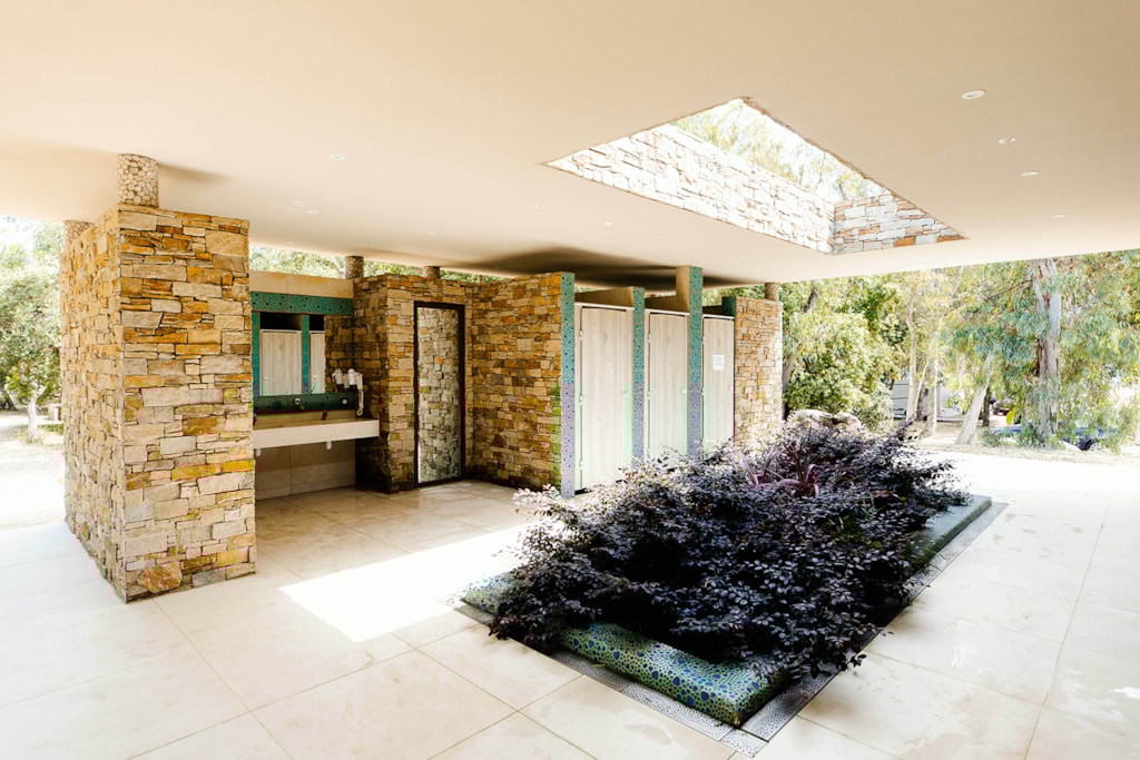 Die sanitären Anlagen, und der schöne, saubere Strand