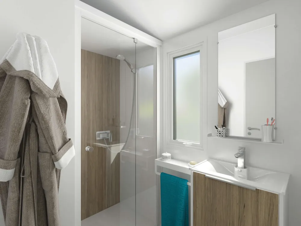 Genießen Sie unsere Mobilheime RIDEAU- RAPIDHOME (32 m²) mit Terrasse am Meer mit Ihren Freunden!