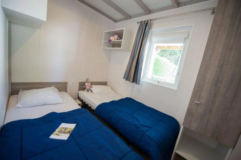 Unser Mobilheim verfügt über : 1 Zimmer mit 1 Doppelbett 140X190cm. 1 Zimmer mit 2 Einzelbetten 80X190cm. 1 Badezimmer mit Dusche, Waschbecken und WC. 1 Küche mit Kühlschrank, Gasherd mit 4 Kochstellen, Mikrowelle, Kaffeemaschine. 1 Wohnzimmer mit Tisch, Stühlen und einer ausziehbaren Bank für 2 Personen (130x190cm). 1 Holzterrasse mit Gartenmöbeln, Liegestühlen und Sonnenliegen. Infos: Bettdecken oder Federbetten und Kopfkissen werden bereitgestellt. Bettwäsche, Handtücher und Reinigungsmittel werden nicht bereitgestellt. Sonnenschirm zur Verfügung, wenn die Terrasse und nicht überdacht ist. Nicht vertragliche Fotos