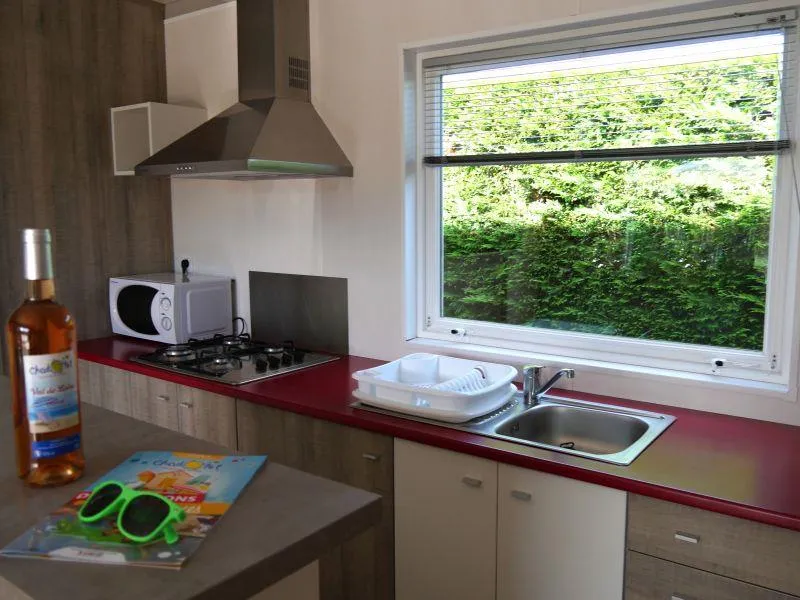 Das Mobilheim verfügt über : 1 Zimmer mit 1 Doppelbett 160X200cm mit TV, Dusche, Waschbecken und separatem WC. 1 Zimmer mit 2 Einzelbetten 80X190cm mit Dusche, Waschbecken und WC. 1 Küche mit Kühlschrank, Kochplatte, Mikrowelle, Geschirrspüler, Nespresso-Kaffeemaschine. . Das Wohnzimmer verfügt über einen Tisch mit Stühlen, eine Sitzbank und einen Fernseher. Die Holzterrasse ist mit Gartenmöbeln, Liegestühlen, Liegestühlen und Plancha oder BBQ ausgestattet. Infos: Bettdecken, Kopfkissen und Laken werden für den gesamten Aufenthalt zur Verfügung gestellt. Handtücher und Reinigungsmittel werden nicht zur Verfügung gestellt. Fotos sind nicht vertraglich bindend
