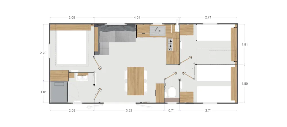 1 chambre lit double 140 x 190 cm / 1 chambre 2 lits simples 70 x 190