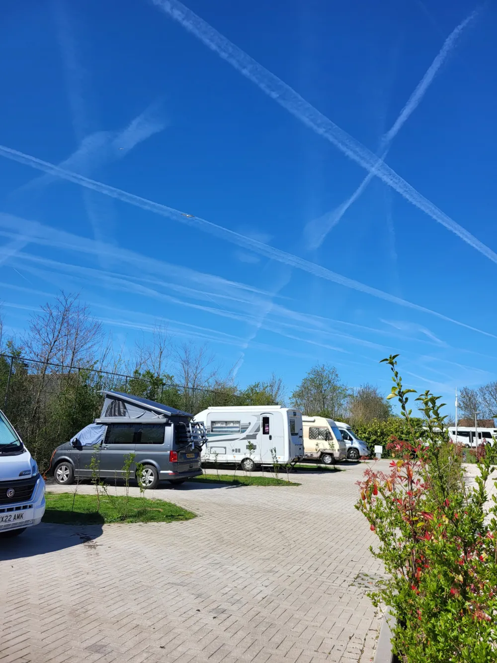 WLAN war auf 2GB pro Tag begrenzt. Der Splitt auf dem Stellplatz war sehr fein und klebte immer an den Schuhen. Etwas gröberer Splitt wäre besser. Nähe zum Flugplatz hat man morgens gemerkt.
