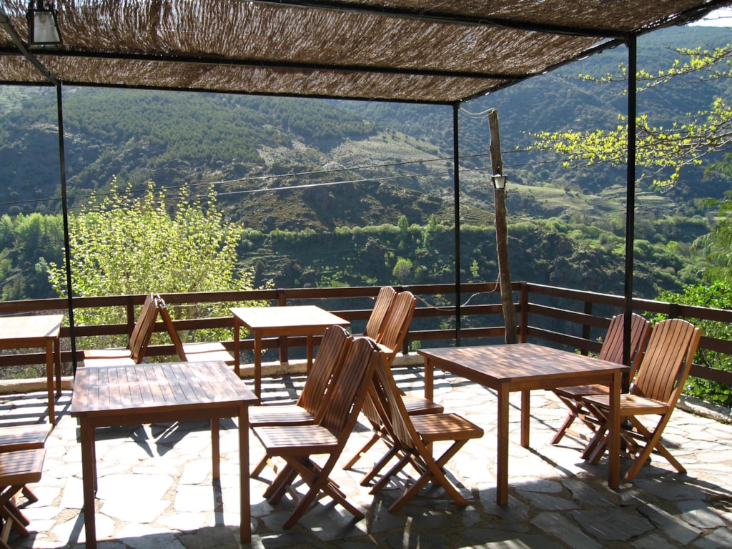 Haus mit grober terrasse und cheminée mit blick auf die Sierra Nevada