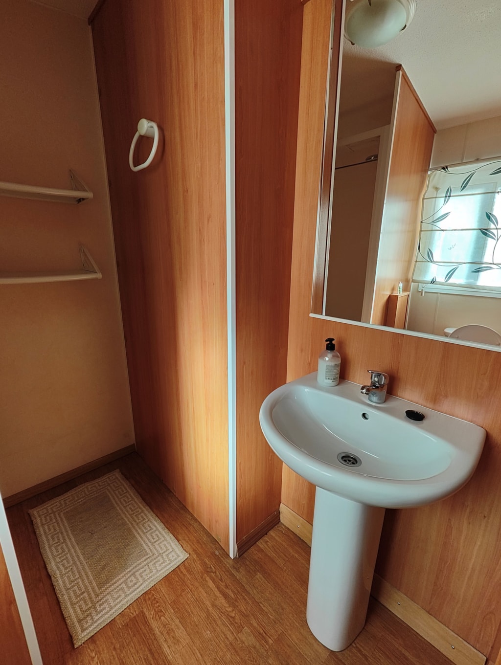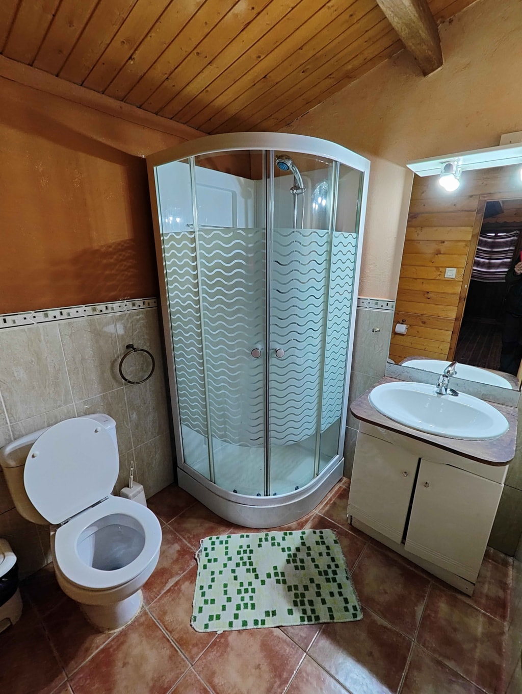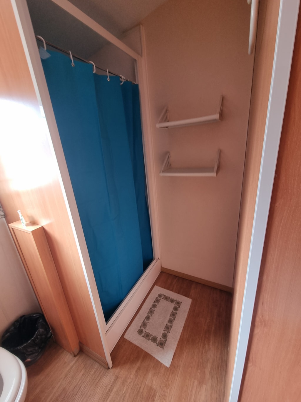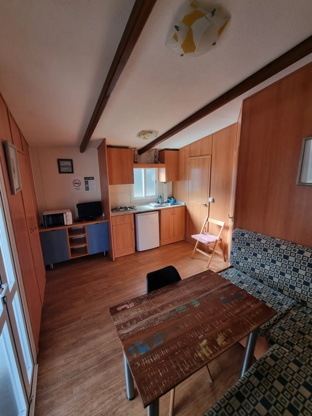 Dieses unglaubliche Modell im modernen Stil hat einen grandiosen Eingang, der aus sehr hohen Fenstern besteht, die in derselben Umgebung das Innere des Mobilheims mit dem Äußeren und dem spektakulären Blick auf die Berge auf 2500 Metern Höhe verbinden. Es zeichnet sich durch eine große Küche, ein bequemes U-förmiges Sofa, ein geräumiges Badezimmer und zwei Schlafzimmer aus.