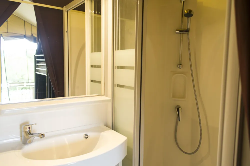 Der "Roulotte" verfügt über 2 Zimmer, ein Badezimmer (Dusche 100x80) sowie eine Küche und ist für 4 Personen geeignet.