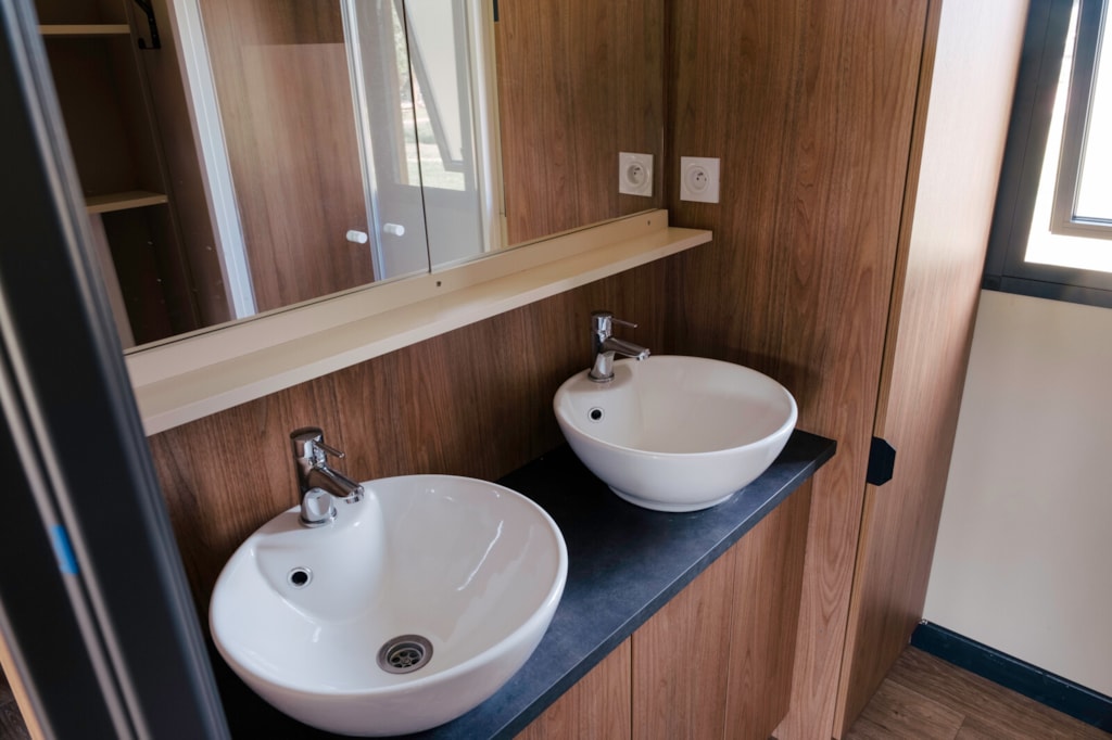 Im Badezimmer sorgen das Doppelwaschbecken und eine XL-Dusche (100x80) für zusätzlichen Komfort. Das WC ist vom Badezimmer getrennt.