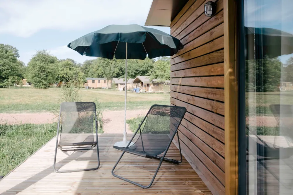 Diese helle Mietunterkunft mit modernem Design und seiner großen Glasfront mit Blick in die Natur eignet sich dank seines Innen- und Außenbereiches ganz besonders für einen Urlaub an der frischen Luft.