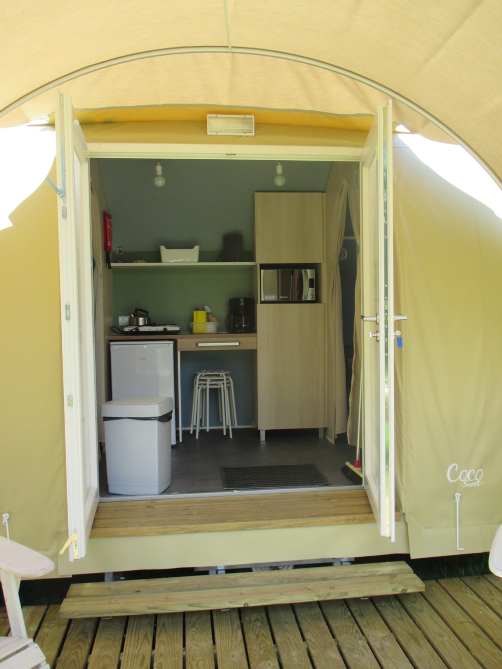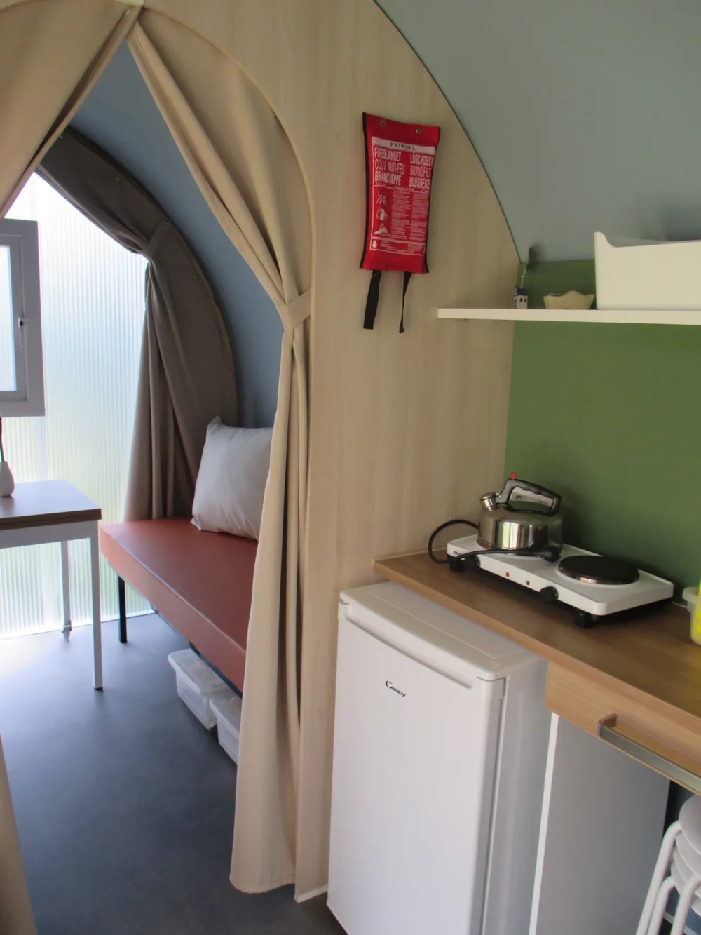 Abenteuerlich und sportlich! Originell und preisbewusste Alternative zum Camping Ein Doppelbett und Zwei Einzel Schlafsofa Ausziehbett Komplett mit Tisch, Stühlen, Kissen, Heizung und Beleuchtung. Duschen und WC sind im zentralen Sanitärgebäude Kochen für die Vorbereitung eine kleine Mahlzeit. Kaltwasserhahn in der Nähe von der Coco Grundfläche 16 m² Haustiere sind in unseren Mietunterkünften leider nicht erlaubt.