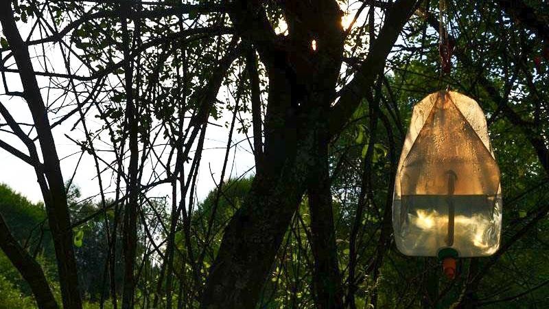 Der Zugang zu Wasser und Strom erfolgt durch ein Loch in der Hecke. Evtl. das Loch etwas vergrößern, damit die Dornen nicht in die Haut stechen.