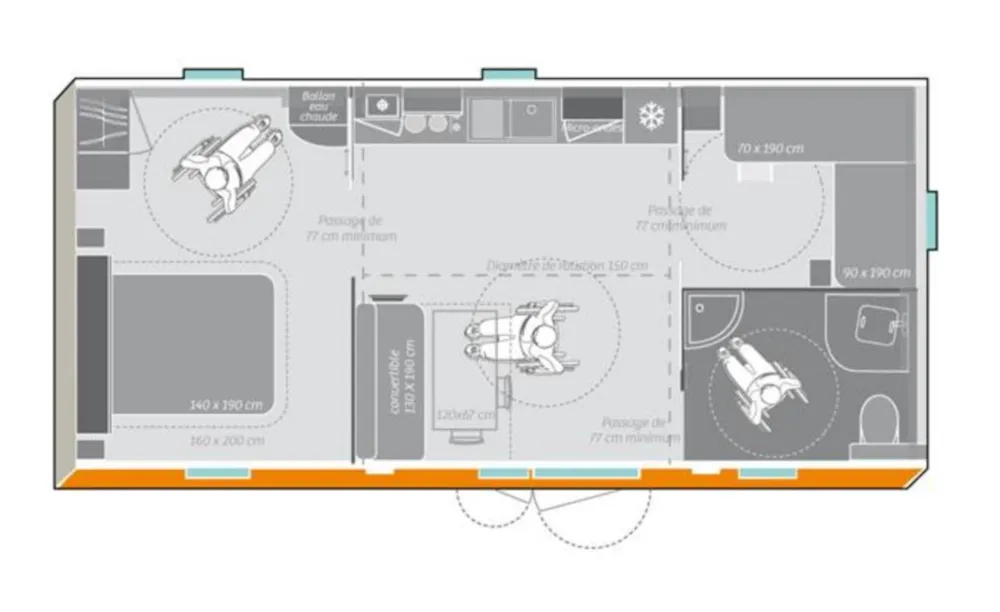 Außerdem profitieren Sie von einem einfachen Zugang zu den Gemeinschaftssanitäranlagen des Campingplatzes (Duschen, Waschbecken, Toiletten), die regelmäßig für Ihren Komfort gepflegt werden.