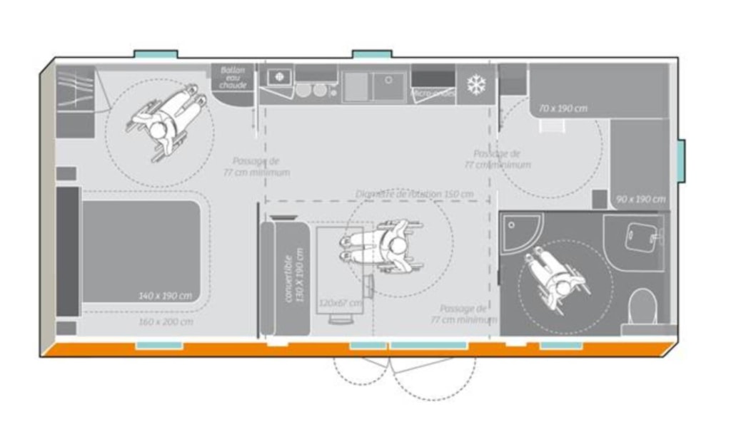 Dieses 38 m² große Mobilheim „Confort” ist perfekt für einen komfortablen und ruhigen Campingurlaub im Departement Loiret und vereint Geräumigkeit, eine komplette Ausstattung und eine freundliche Atmosphäre.