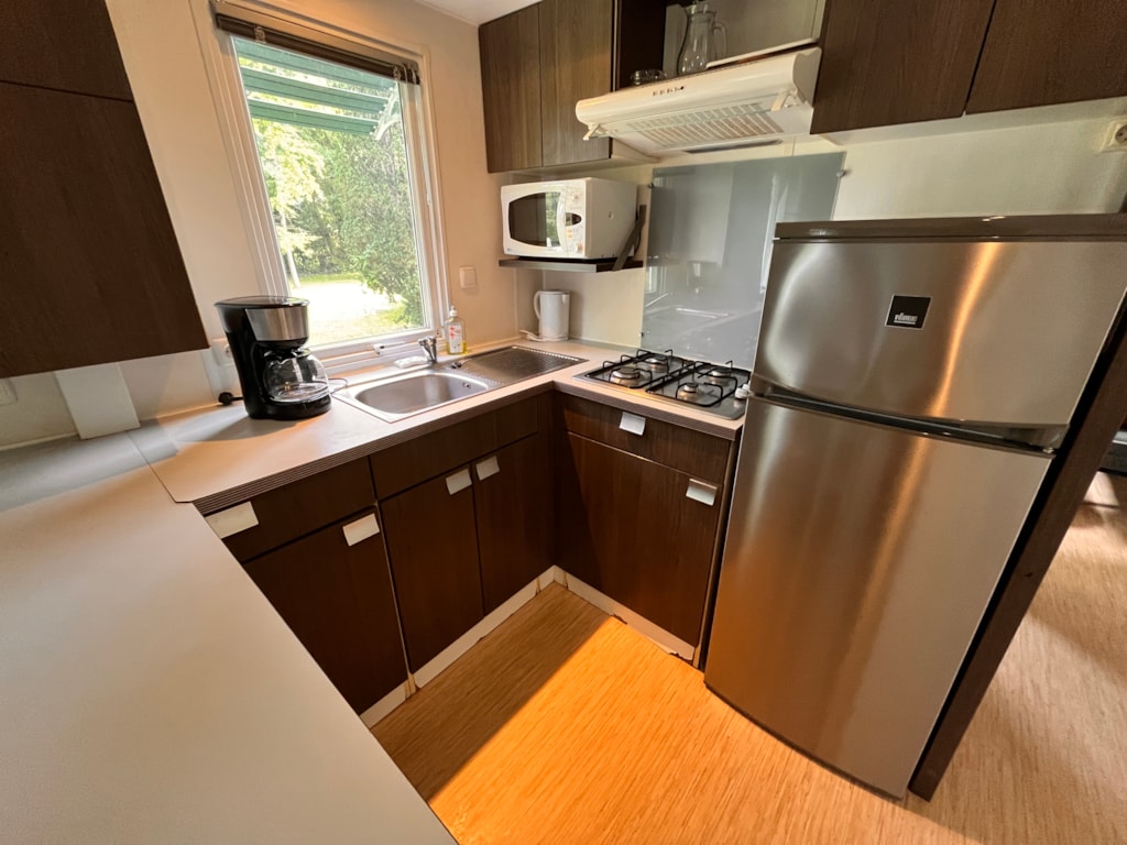 Nous vous proposons un mobil-home studio confortable avec toutes les commodités, 1 place de parking et grand parking extérieur.
