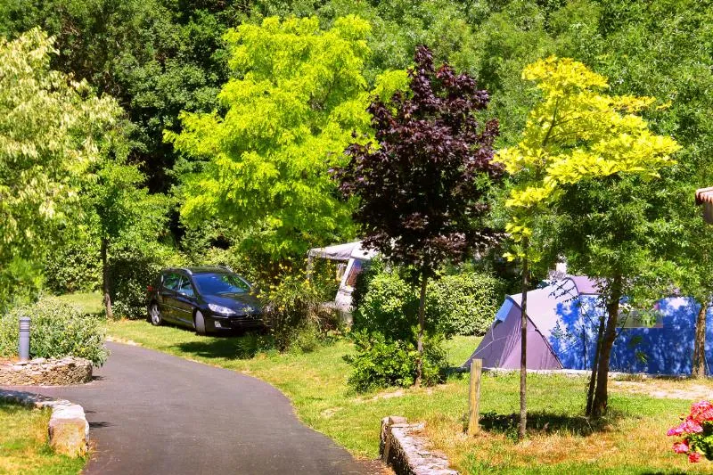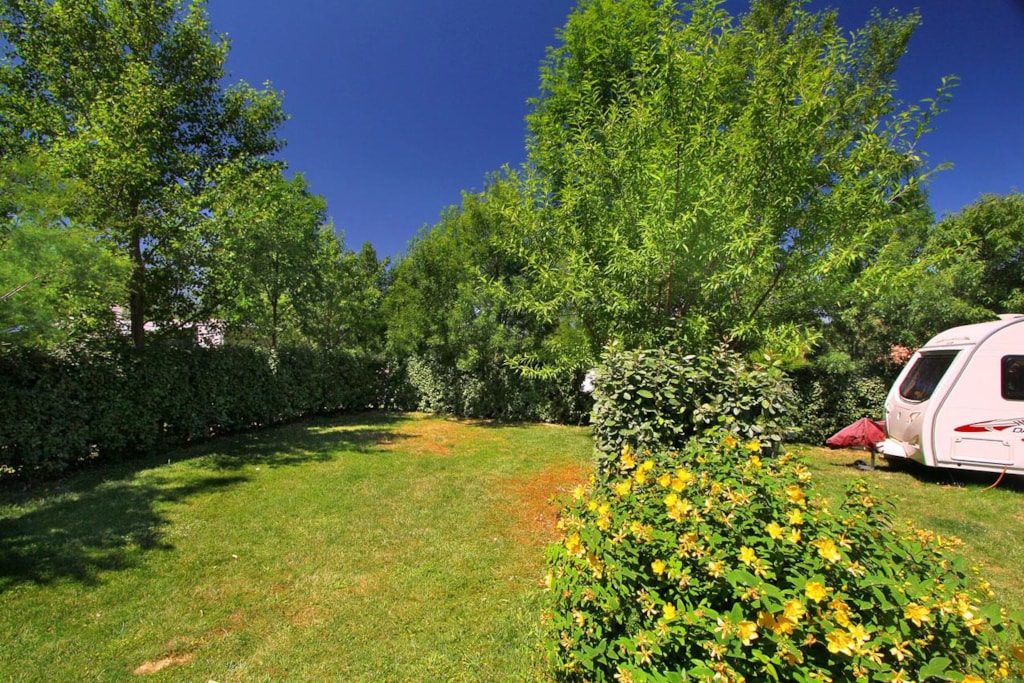 Große Stellplätze. Ausreichend Privatsphäre durch Hecken. Schatten durch Bäume