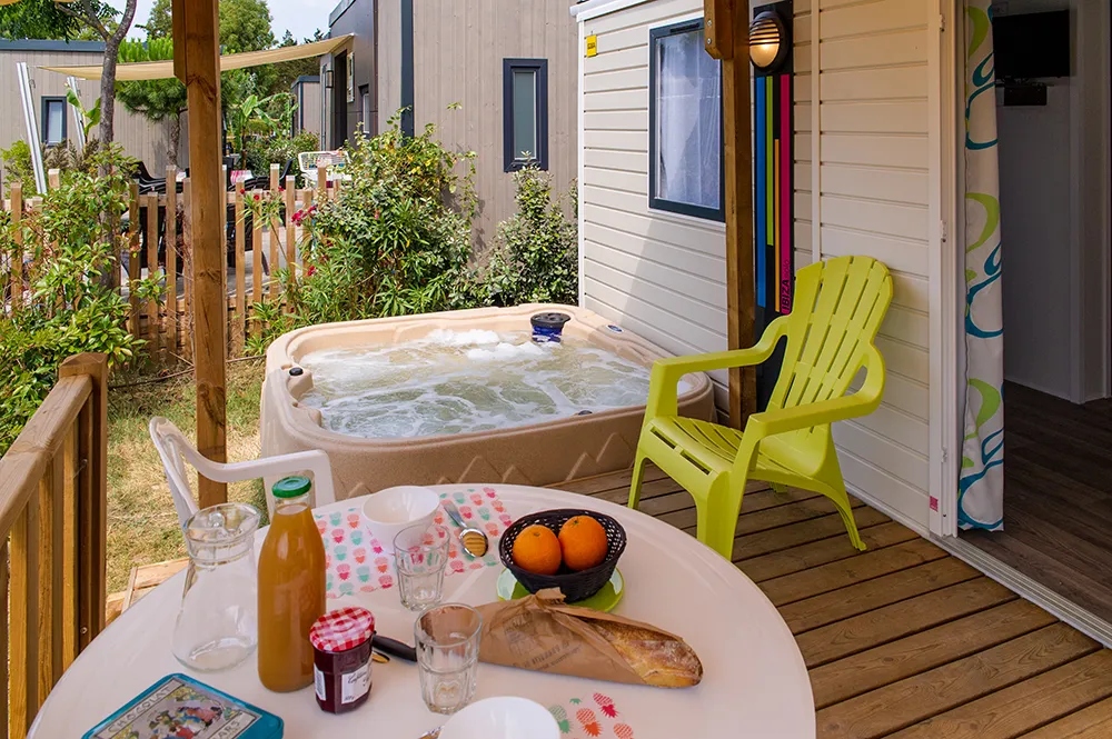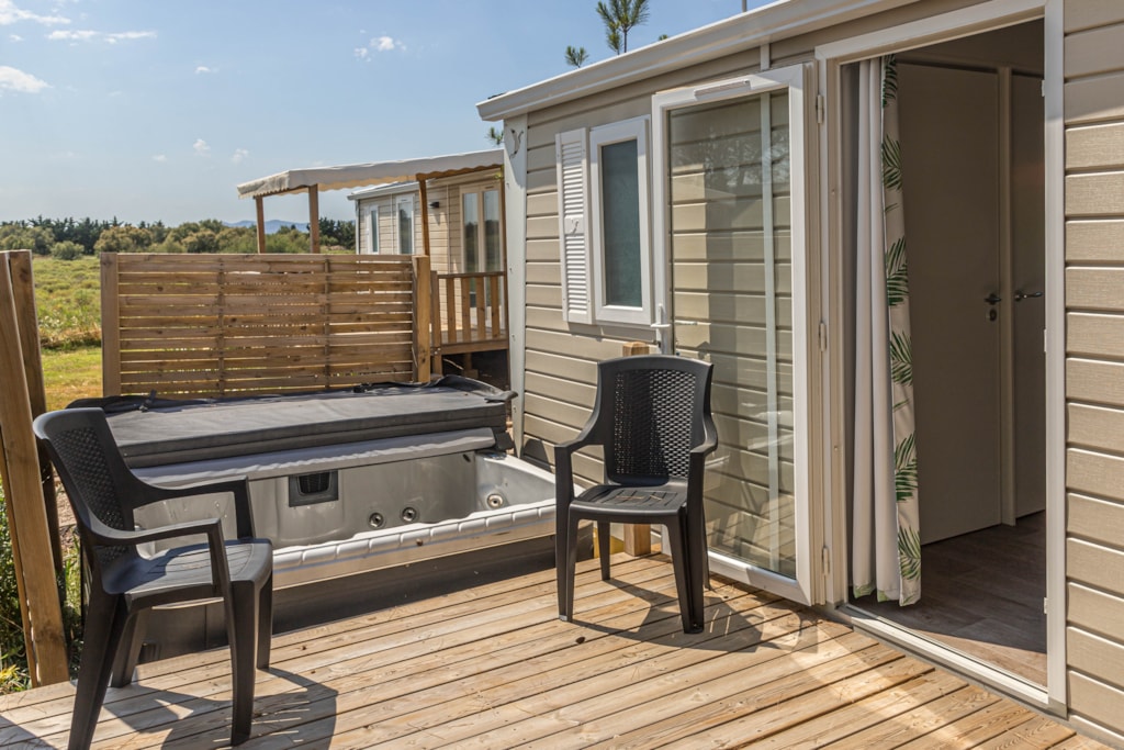 Chalet Premium Manyara 4 personnes avec Spa Lave Vaisselle, Climatisation ,TV ,Plancha et Volets Roulants