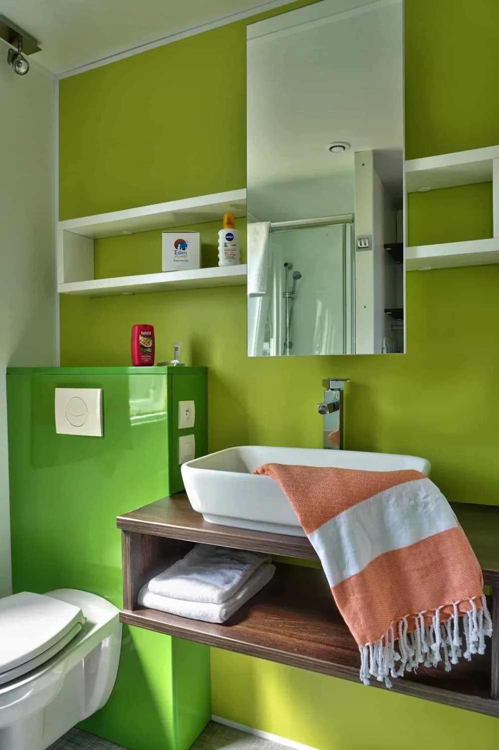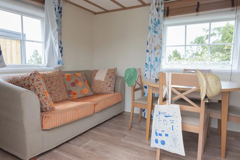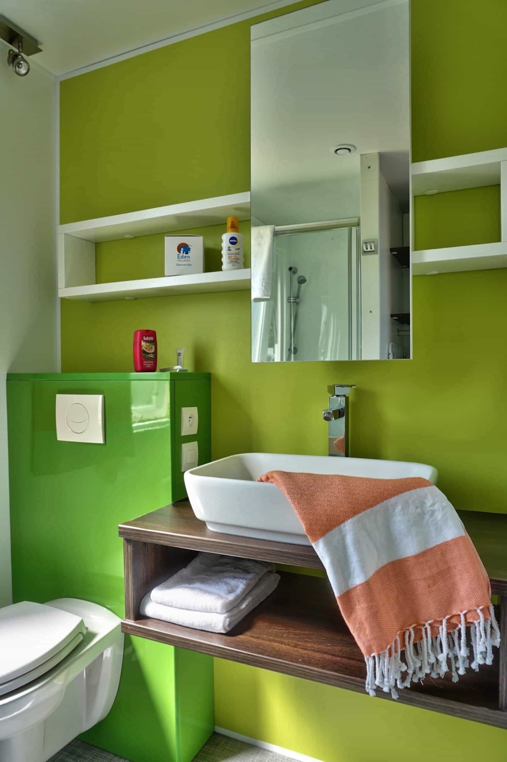 Unsere Tiny Home-Unterkunft ist ein echtes kleines Haus auf Rädern. Ein gemütliches Ambiente, kombiniert mit einem gut eingerichteten und optimierten Raum. Im Erdgeschoss finden Sie ein Wohnzimmer mit ausgestatteter Küchenzeile und Badezimmer. Im Obergeschoss befindet sich das Schlafzimmer im Zwischengeschoss, das mit zwei Einzelbetten ausgestattet ist und die Kinder glücklich machen wird.