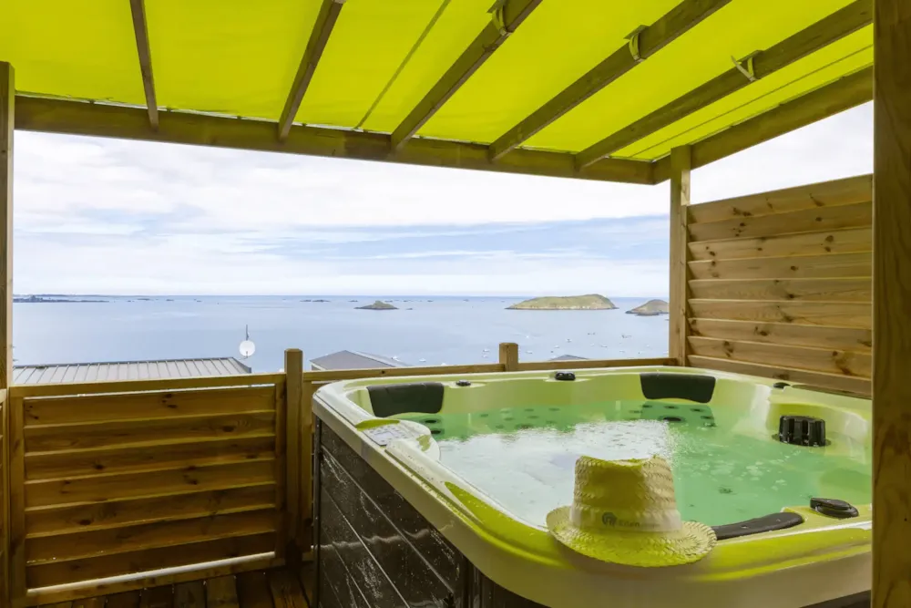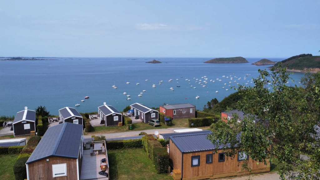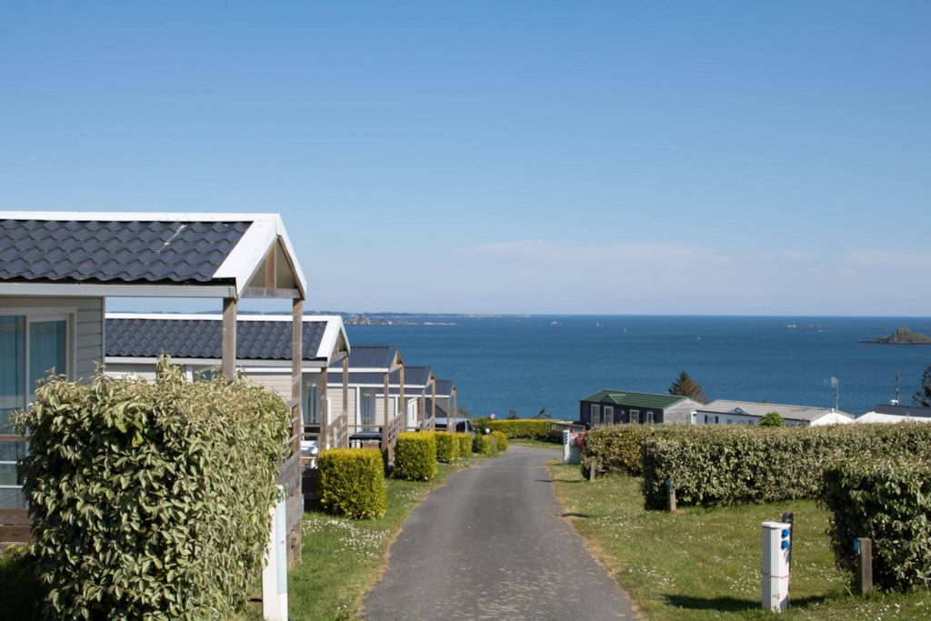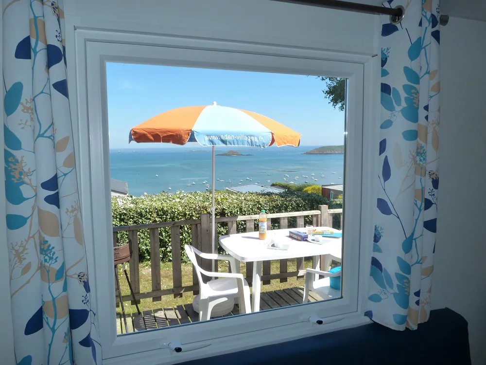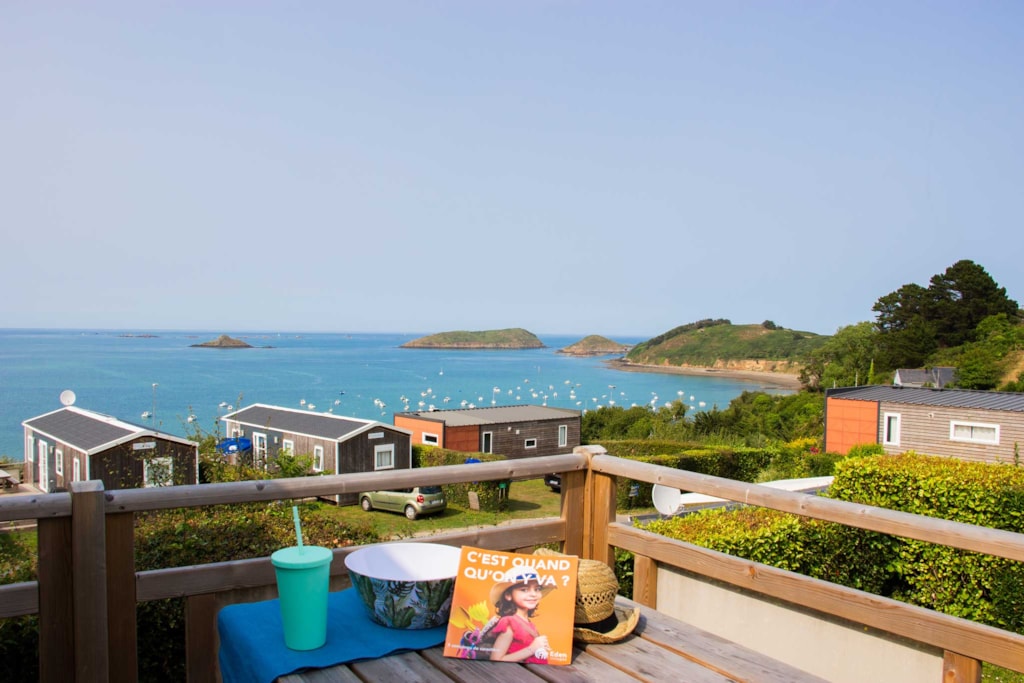 Ein atemberaubender Panoramablick: Das ist es, was Ihnen unser Mobilheim Panorama mit 2 Schlafzimmern auf dem Campingplatz Cap de Bréhat in der Nordbretagne bietet. Eine Ferienunterkunft für bis zu 5 Urlauber, die komplett ausgestattet ist: Fernseher, Liegestühle, Geschirrspüler, Gasplancha, Bettwäsche und Handtücher werden gestellt und WLAN ist im Preis inbegriffen.