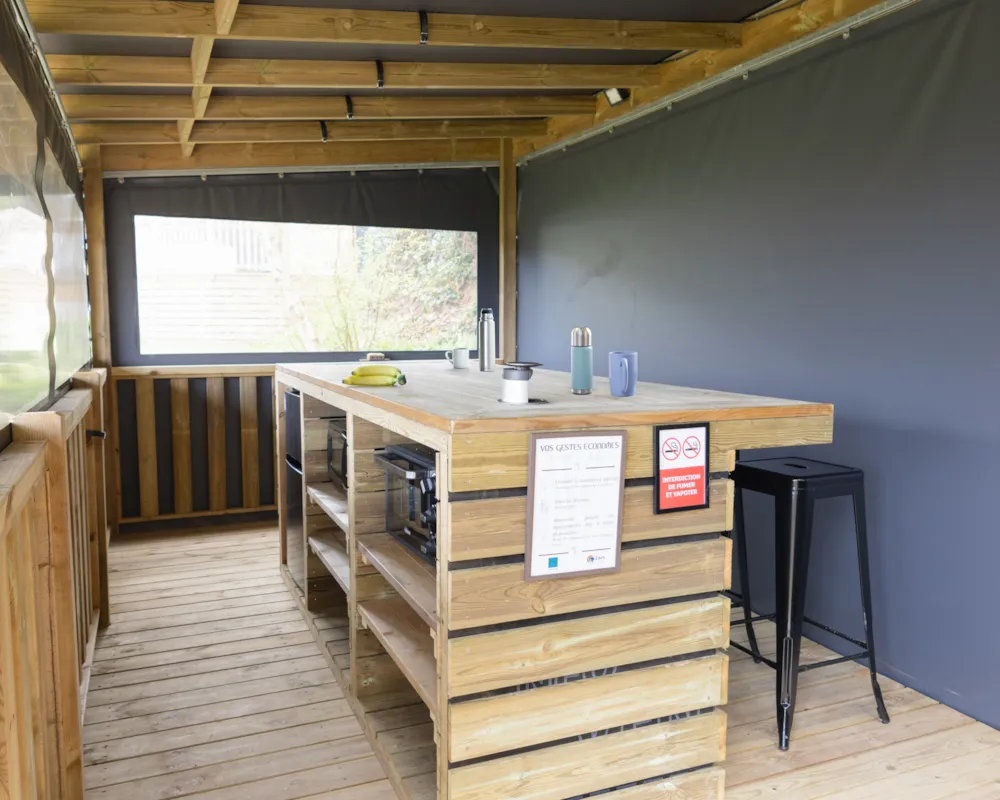 Eine Unterkunft, die speziell für Wanderer konzipiert wurde! Sie verfügen über einen erhöhten Schlafbereich mit zwei Einzelbetten und einem geschützten Picknicktisch. Die Unterkunft verfügt über keinen Wasseranschluss. Sie müssen die Sanitäranlagen des Campingplatzes benutzen.