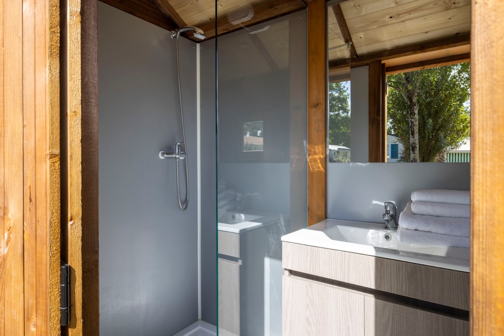 Close to the environment, our Cannelle Premium offers you a warm atmosphere in a relaxing setting, with a beach-cocooning ambiance in the heart of nature. Take advantage of its spacious interior and covered terrace, perfect for sunny lunches and late summer evenings... A fully-equipped, insulated wooden home, it's the ideal accommodation for all seasons.