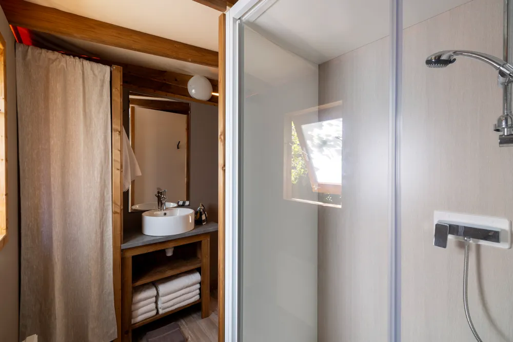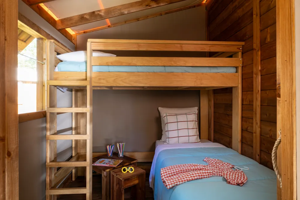 Discover the charm of open-air camping on stilts! Take advantage of a spacious 27m² cabin with 2 bedrooms and a terrace to enjoy moments of conviviality and relaxation. Environmentally-friendly and close to nature, it's ideal for vacations with family or friends.
