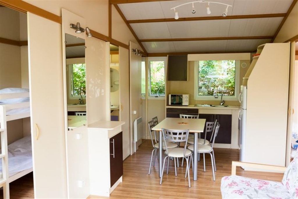 Mobile-home - 27 m2 - 2 bedrooms - 4 people max - terrace 1 bedroom with 1 double bed, 1 bedroom with 2 single beds, 1 bathroom with shower, washbasin and toilets, 1 equipped kitchen, 1 living-room, terrace. You can park your car next to the mobile-home.
