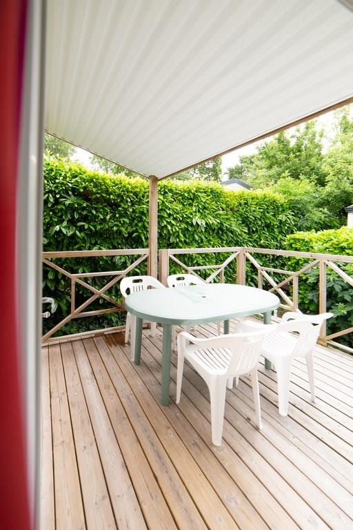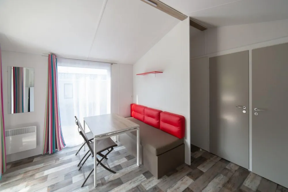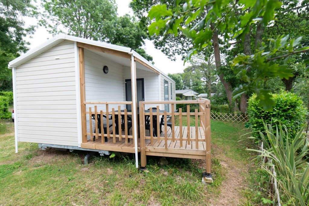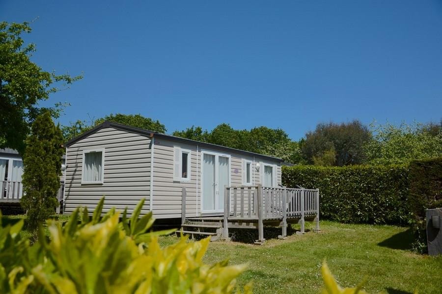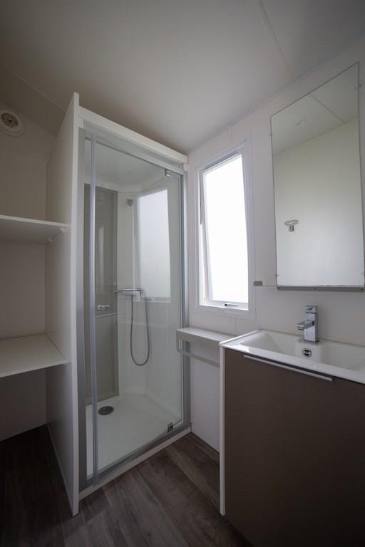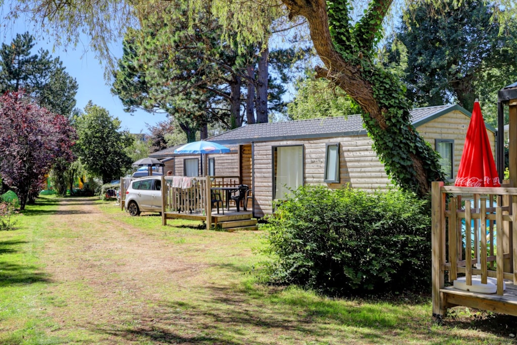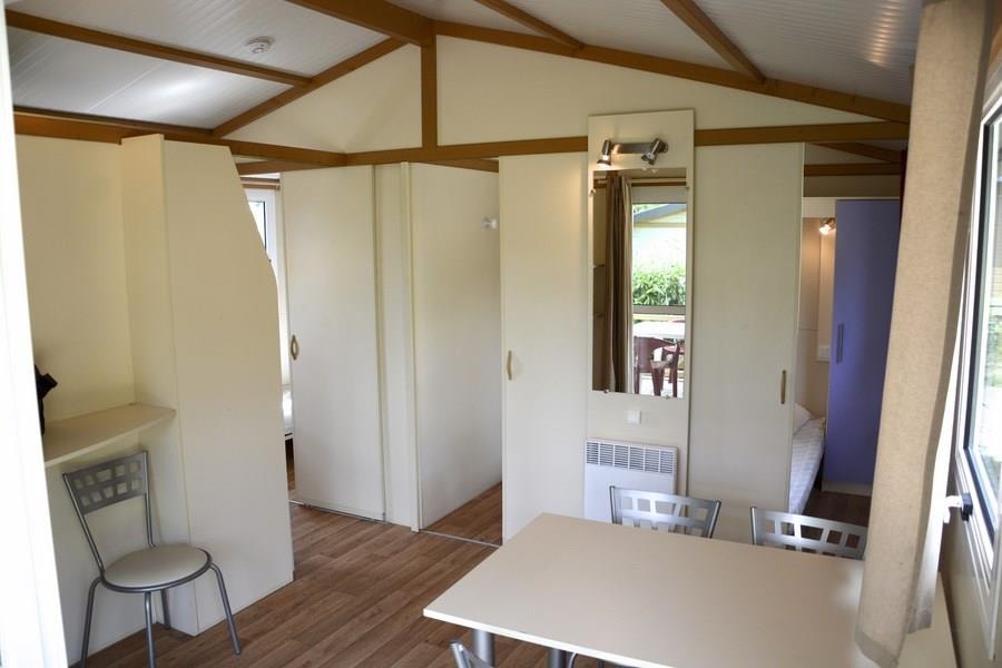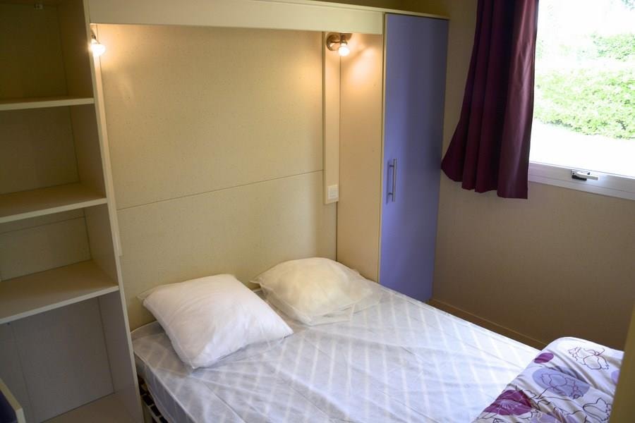 Mobile-home - 24 m2 - 2/4 people max - 2 bedrooms - terrace 1 bedroom with 1 double bed, 1 bedroom with 2 single beds next to each other, 1 equipped kitchen, 1 living-room, 1 bathroom with shower, washbasin and toilets, terrace. You can park your car next to the mobile-home. The mobile-home is settled on a grassy pitch.