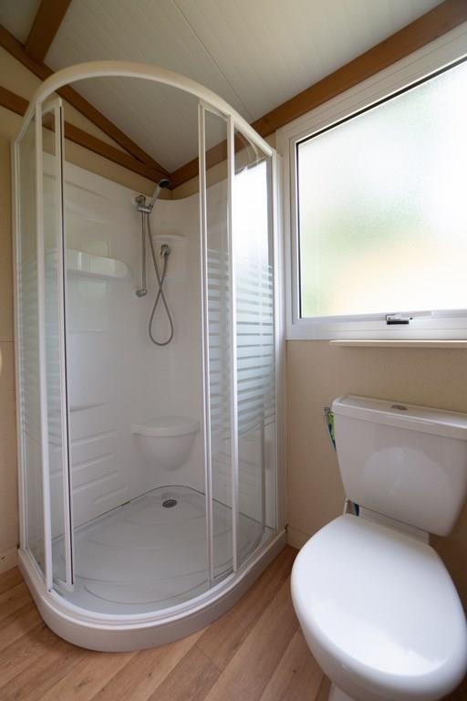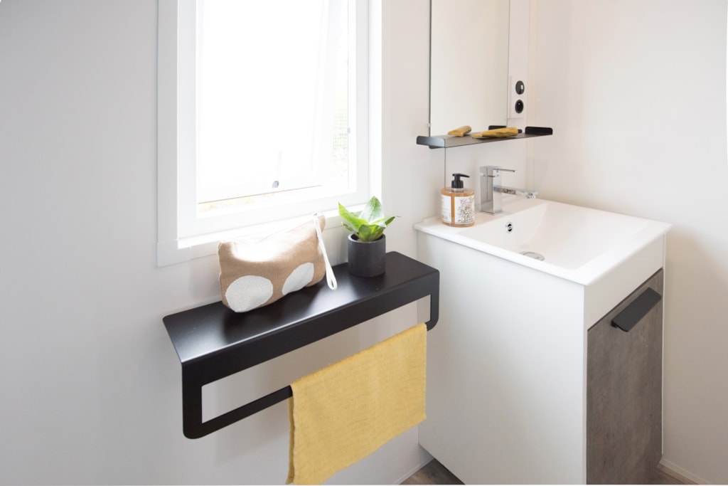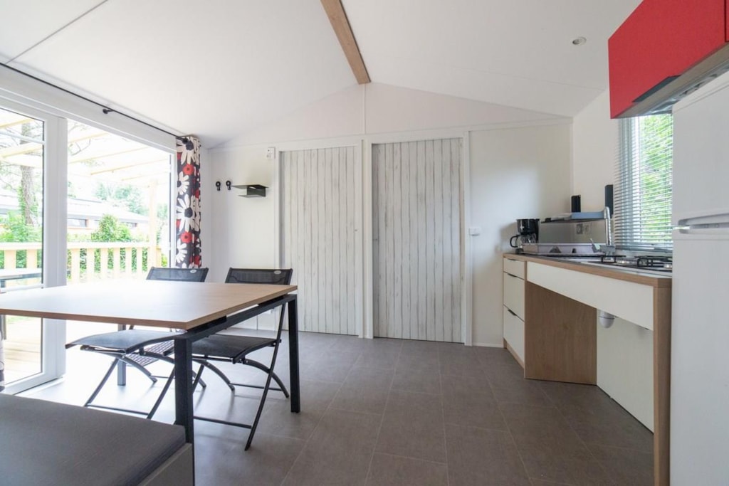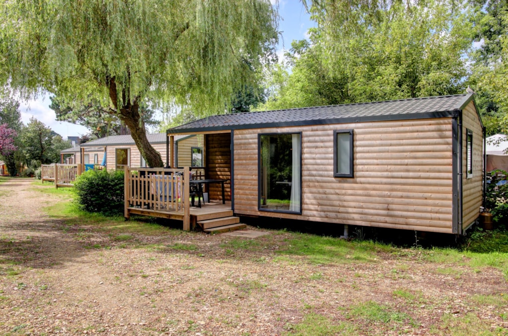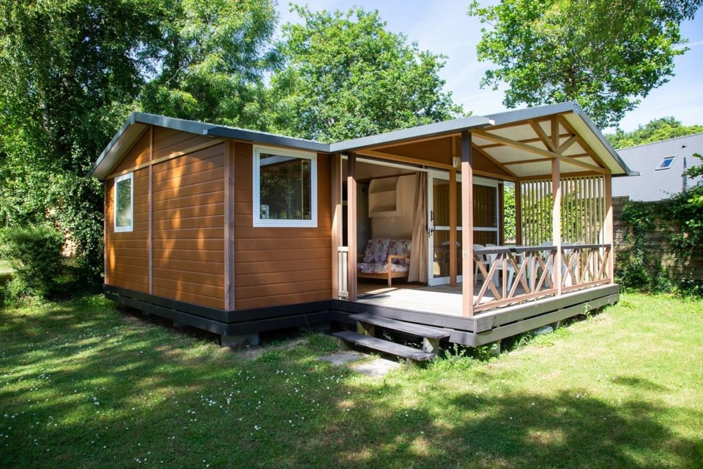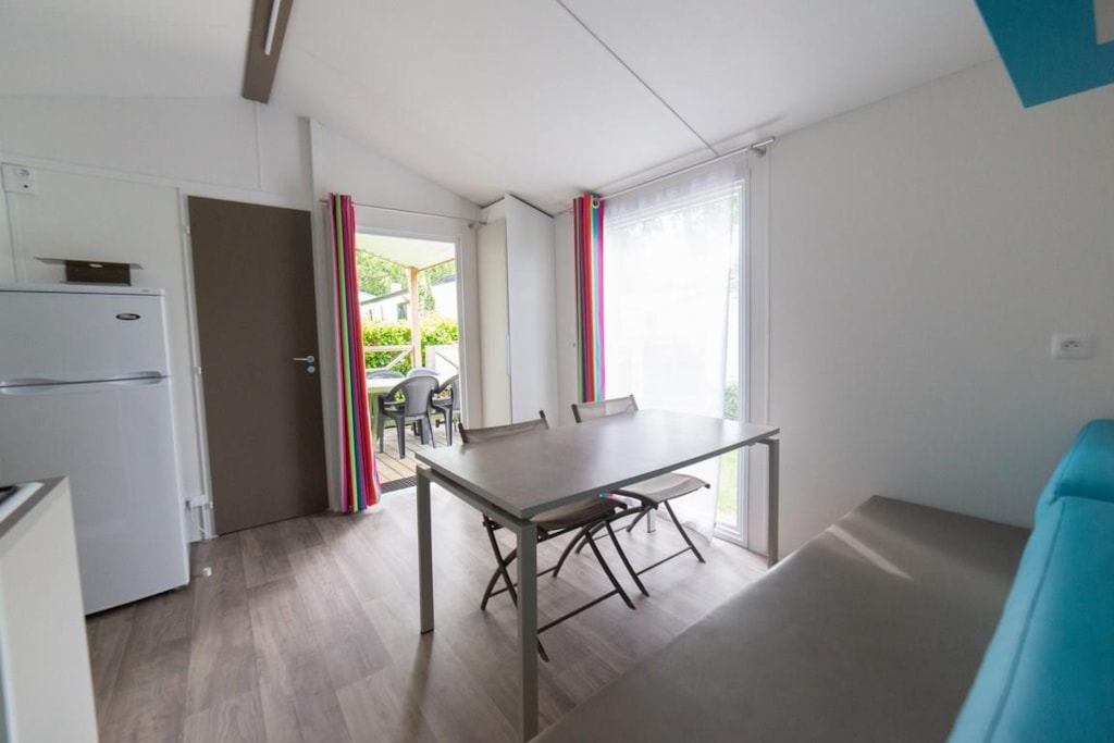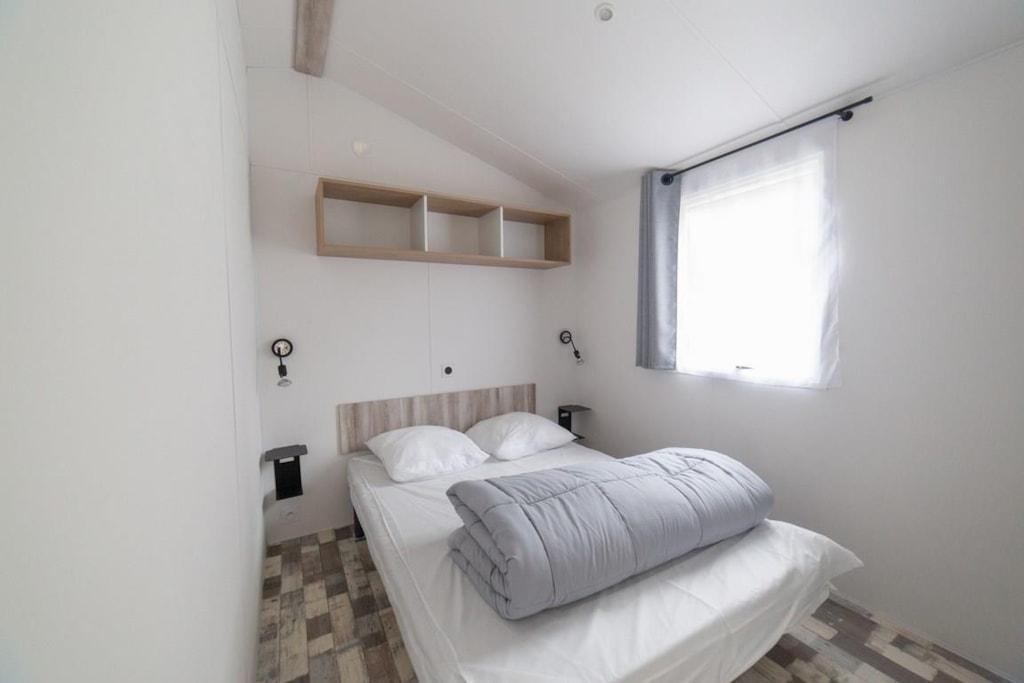 Mobile-home - 24 m2 - 2/4 people max - 2 bedrooms - terrace 1 bedroom with 1 double bed, 1 bedroom with 2 single beds next to each other, 1 equipped kitchen, 1 living-room, 1 bathroom with shower, washbasin and toilets, terrace. You can park your car next to the mobile-home. The mobile-home is settled on a grassy pitch.